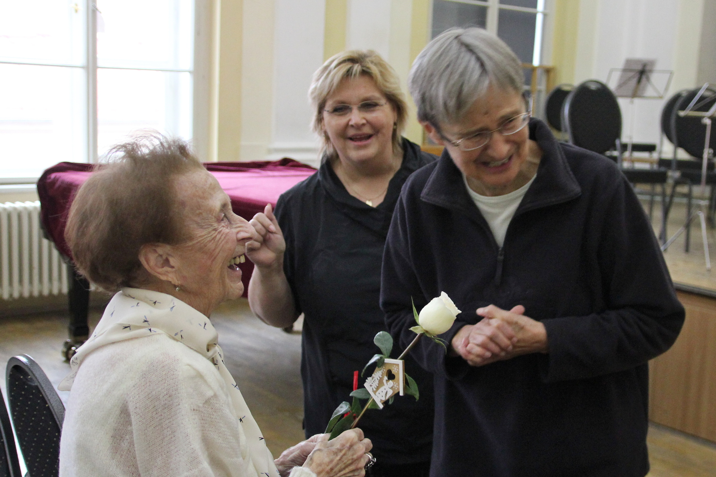 V aule GJN proběhlo 13.11. 2019 slavnostní shromáždění na počest životního jubilea emeritní paní ředitelky Věry Pechové. Milé a vážené oslavenkyni za všechny přítomné i nepřítomné popřála naše paní ředitelka Zuzana Wienerová. Poté vystoupil orchestr a příležitostný sbor gymnázia pod vedením prof. Kubánka.