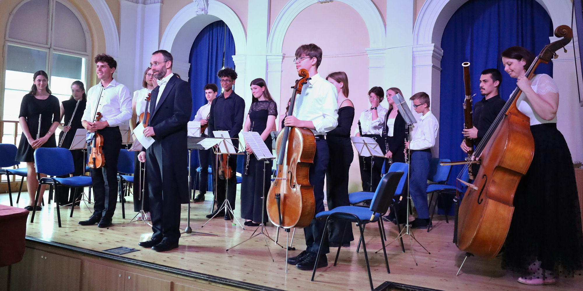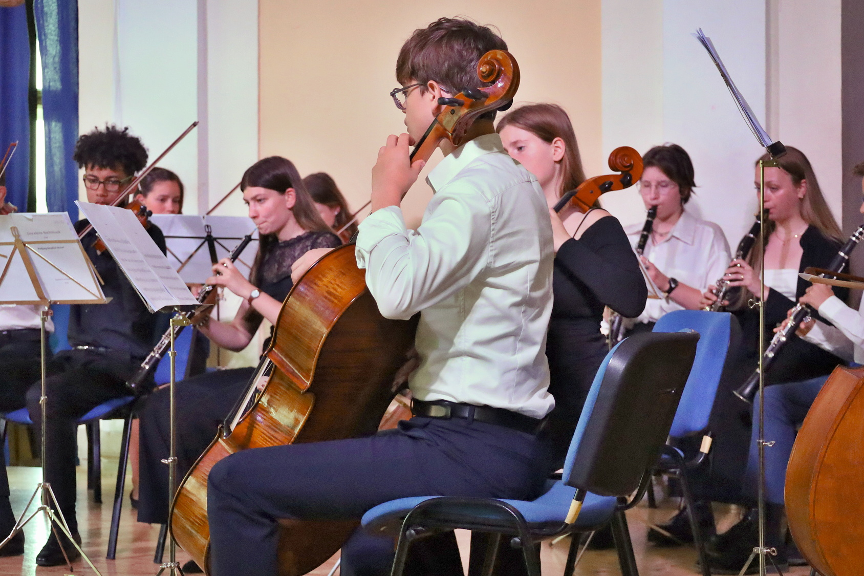 Ve čtvrtek 13. června 2024 se Komorní orchestr GJN pod vedením prof. Víta Kubánka rozloučil se školním rokem koncertem v aule. Vyslechli jsme Mozartovu Malou noční hudbu, Grave od Jana Jiřího Bendy s houslovým sólem hostující Johanky Kubánkové, Symfonii D dur od polského anonyma a Vivaldiho Zimu ze Čtyř ročních období. Zde s prvními houslemi opět excelovala Magdalena Eliášová. Orchestr se loučil nejen s letošním školním rokem, ale i s několika čerstvými maturanty. Bohužel nám odchází Tereza Šarfová, Alžběta Žížalová, Vendula Zíková, Antonín Dittrich a Kaan Ismail. Přejeme jim hodně štěstí a sil do dalšího studia a doufáme, že díky novým studentům se náš ansámbl v září opět rozroste. Za krásný zážitek moc děkujeme všem účinkujícím a především prof. Kubánkovi.