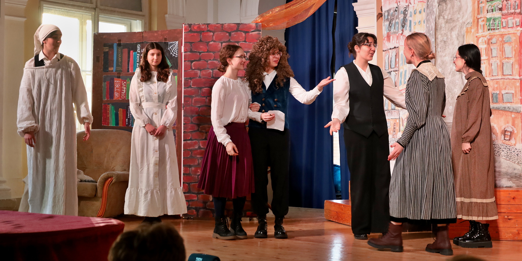 Anglický divadelní seminář pod vedením Rebeccy Riisness tento podzim nazkoušel adaptaci slavné Dickensovy povídky Vánoční koleda a ve středu 18.12. ji předvedl ostatním. Skvělá práce, úchvatné kulisy a kostýmy, fantastické herecké výkony!