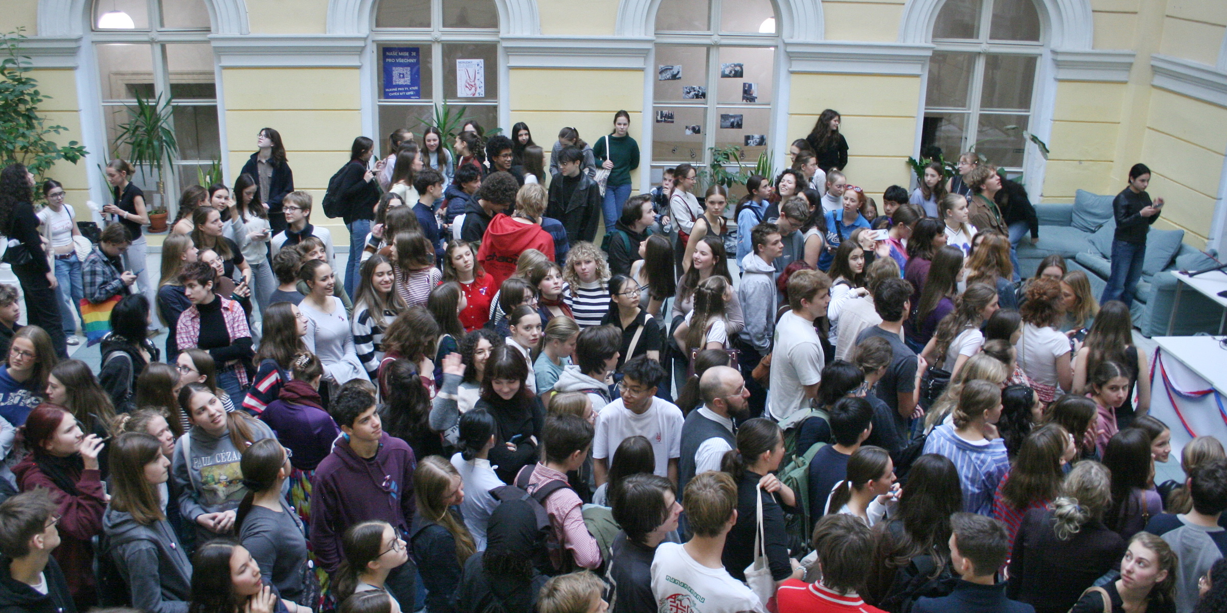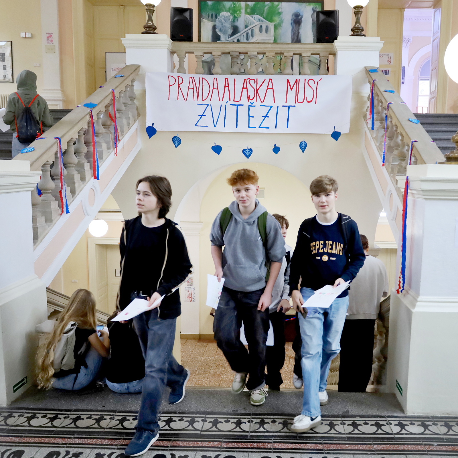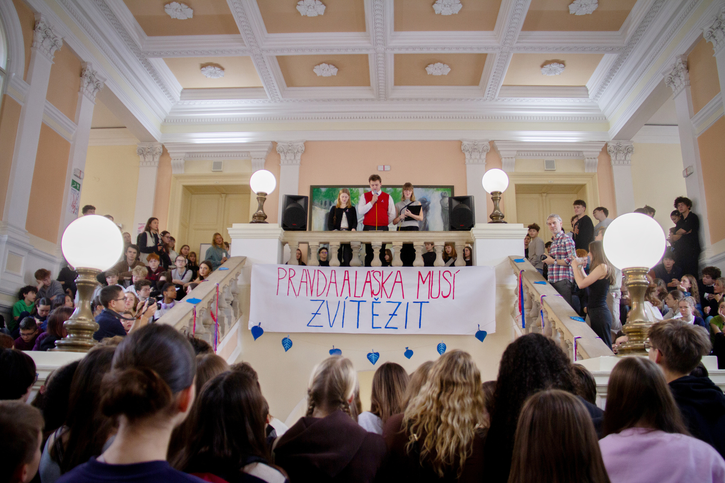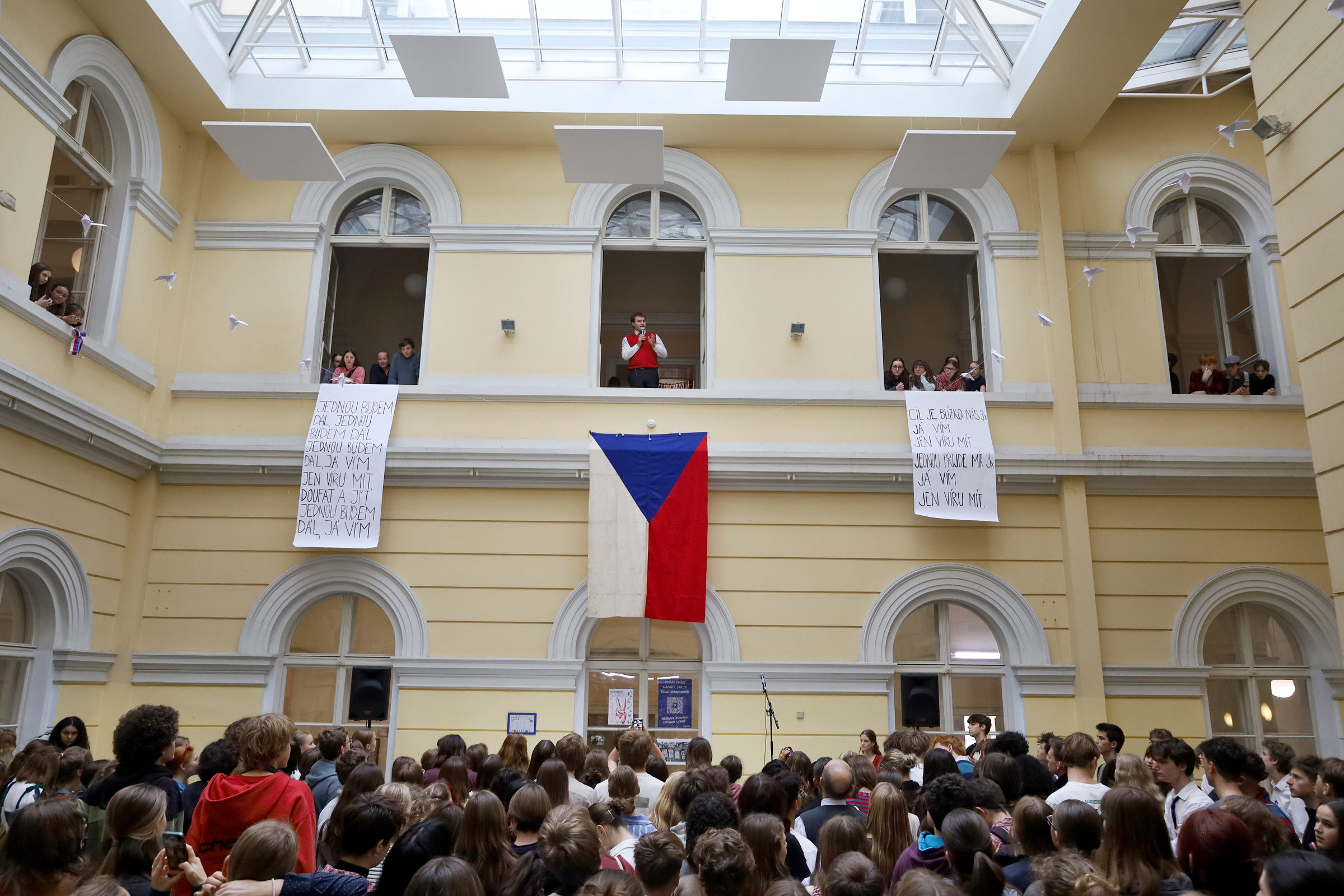 Pátek před 17. listopadem patří již tradičně školnímu Sametu. Je skvělé, že na škole máme studentky a studenty schopné dát dohromady vynikající program, domluvit vzácné hosty, moderovat jejich přednášky, proměnit učebny a chodby ve výstavní síně, zařídit bazárek, kavárnu, snack bar, divadla, taneční worshopy, připravit inspirativní zahájení i hudební závěr, zkrátka připravit celodenní akci tak, že je člověku líto, že nemůže zvládnout všechno. Klobouk dolů, mockrát děkujeme Studentské radě a všem dalším organizátorům, zúčastněným učitelům a v neposlední řadě všem milým hostům. Děkujeme!