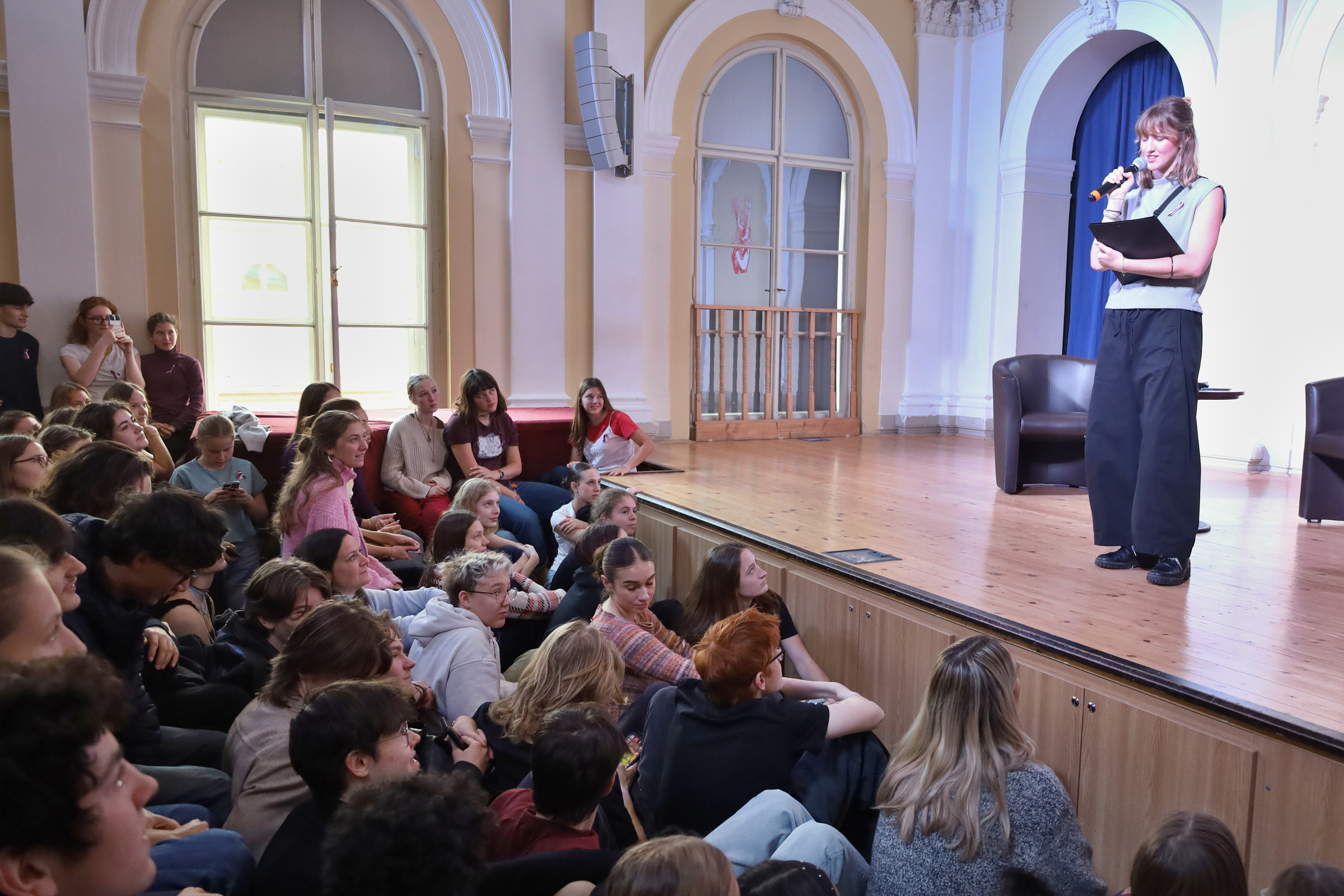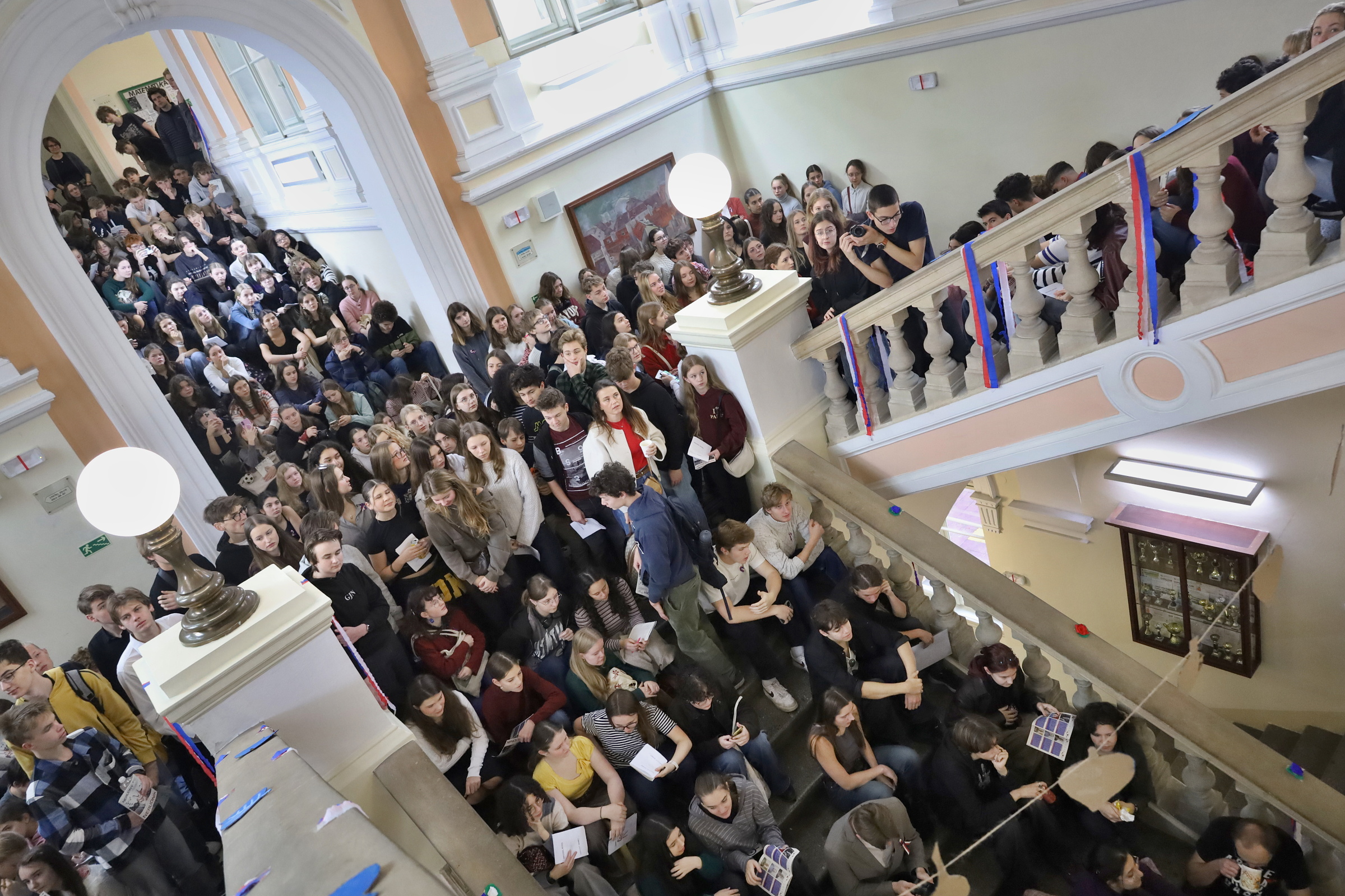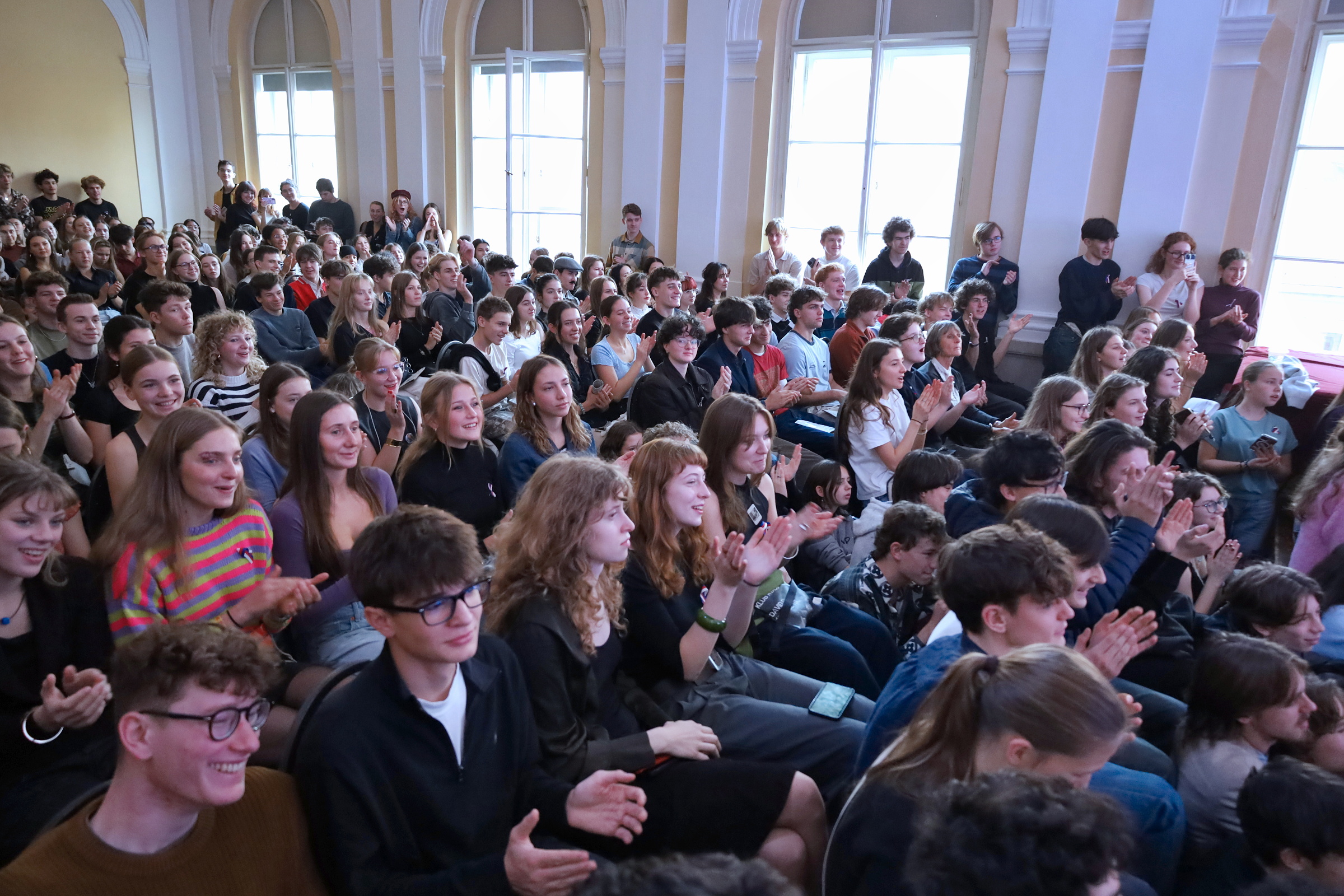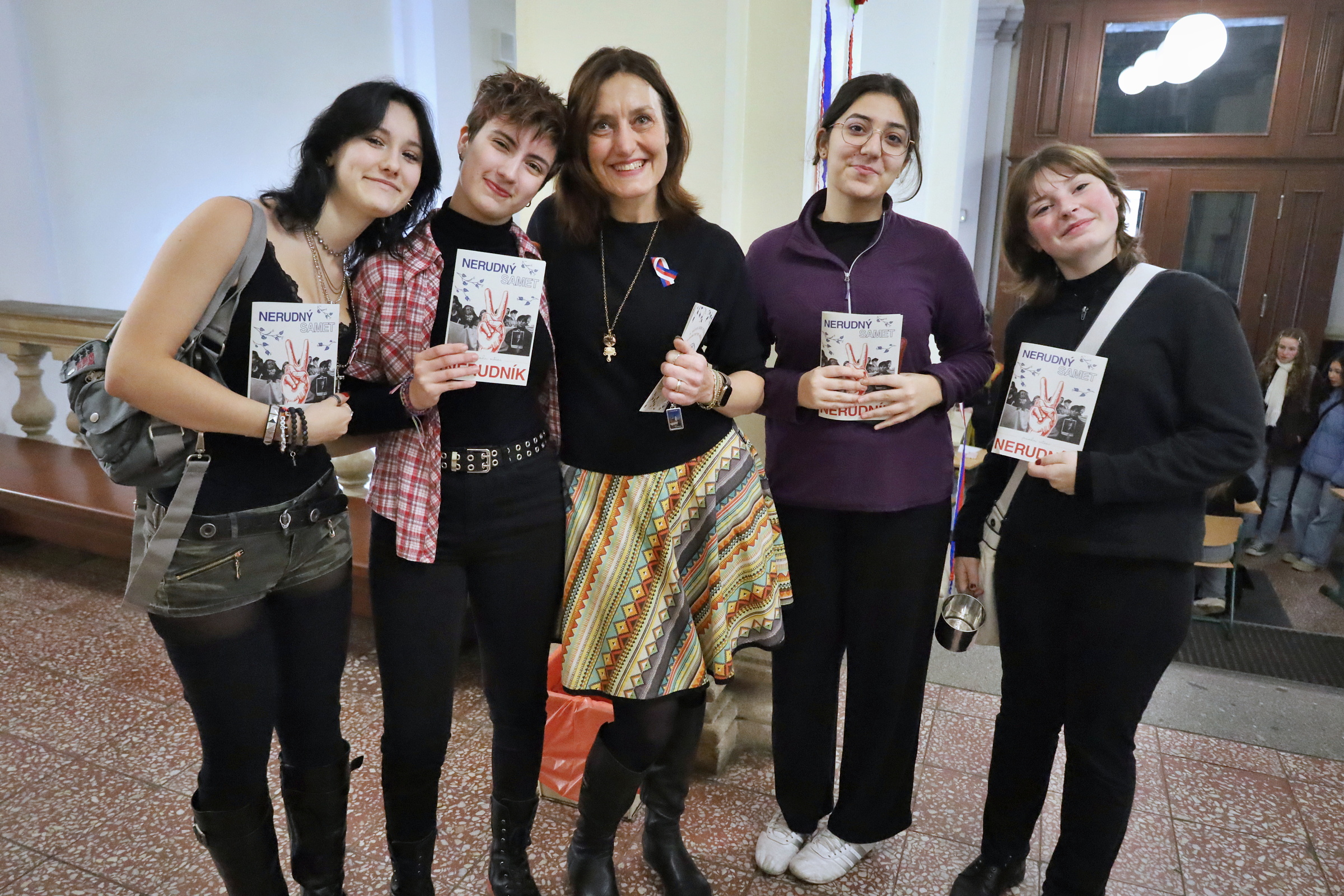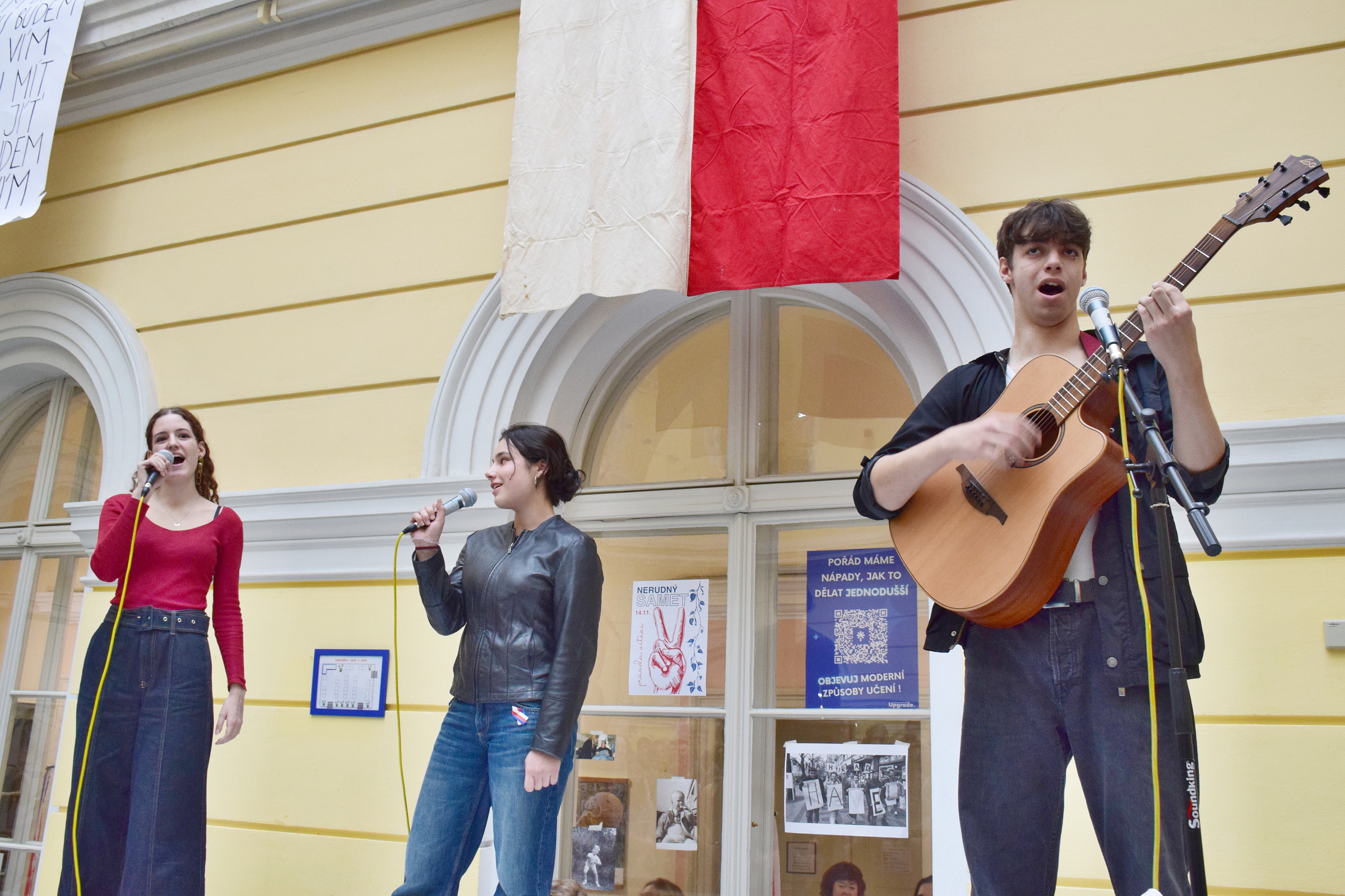 Pátek před 17. listopadem patří již tradičně školnímu Sametu. Je skvělé, že na škole máme studentky a studenty schopné dát dohromady vynikající program, domluvit vzácné hosty, moderovat jejich přednášky, proměnit učebny a chodby ve výstavní síně, zařídit bazárek, kavárnu, snack bar, divadla, taneční worshopy, připravit inspirativní zahájení i hudební závěr, zkrátka připravit celodenní akci tak, že je člověku líto, že nemůže zvládnout všechno. Klobouk dolů, mockrát děkujeme Studentské radě a všem dalším organizátorům, zúčastněným učitelům a v neposlední řadě všem milým hostům. Děkujeme!