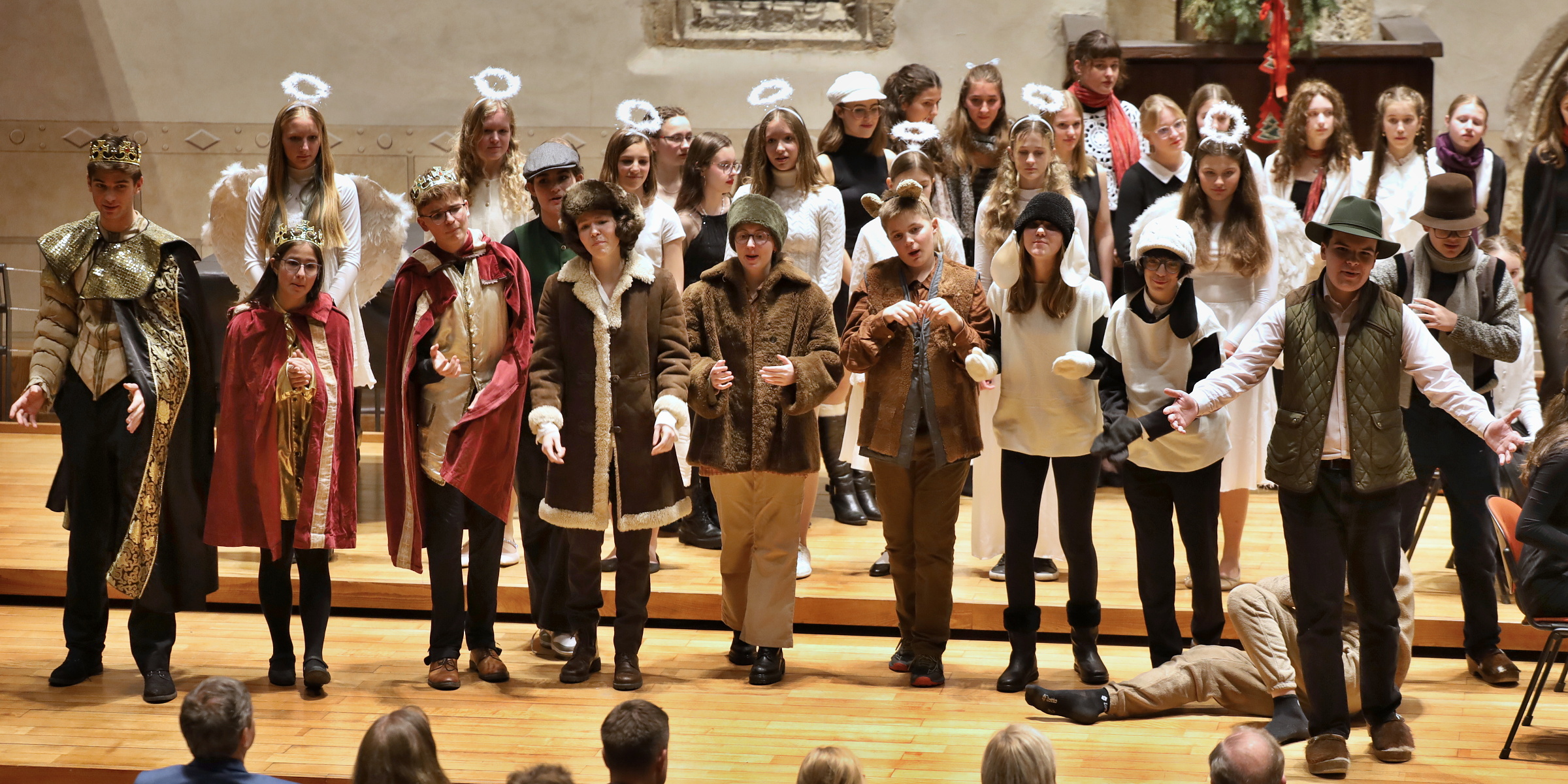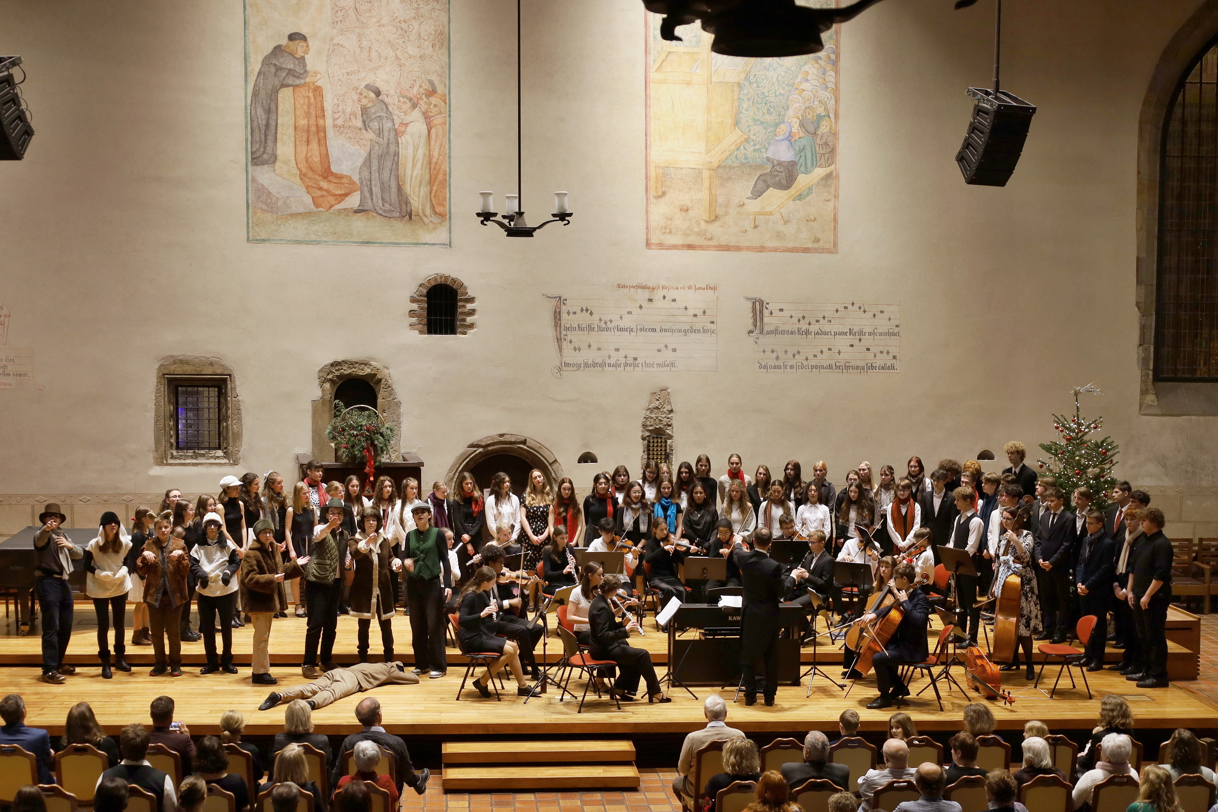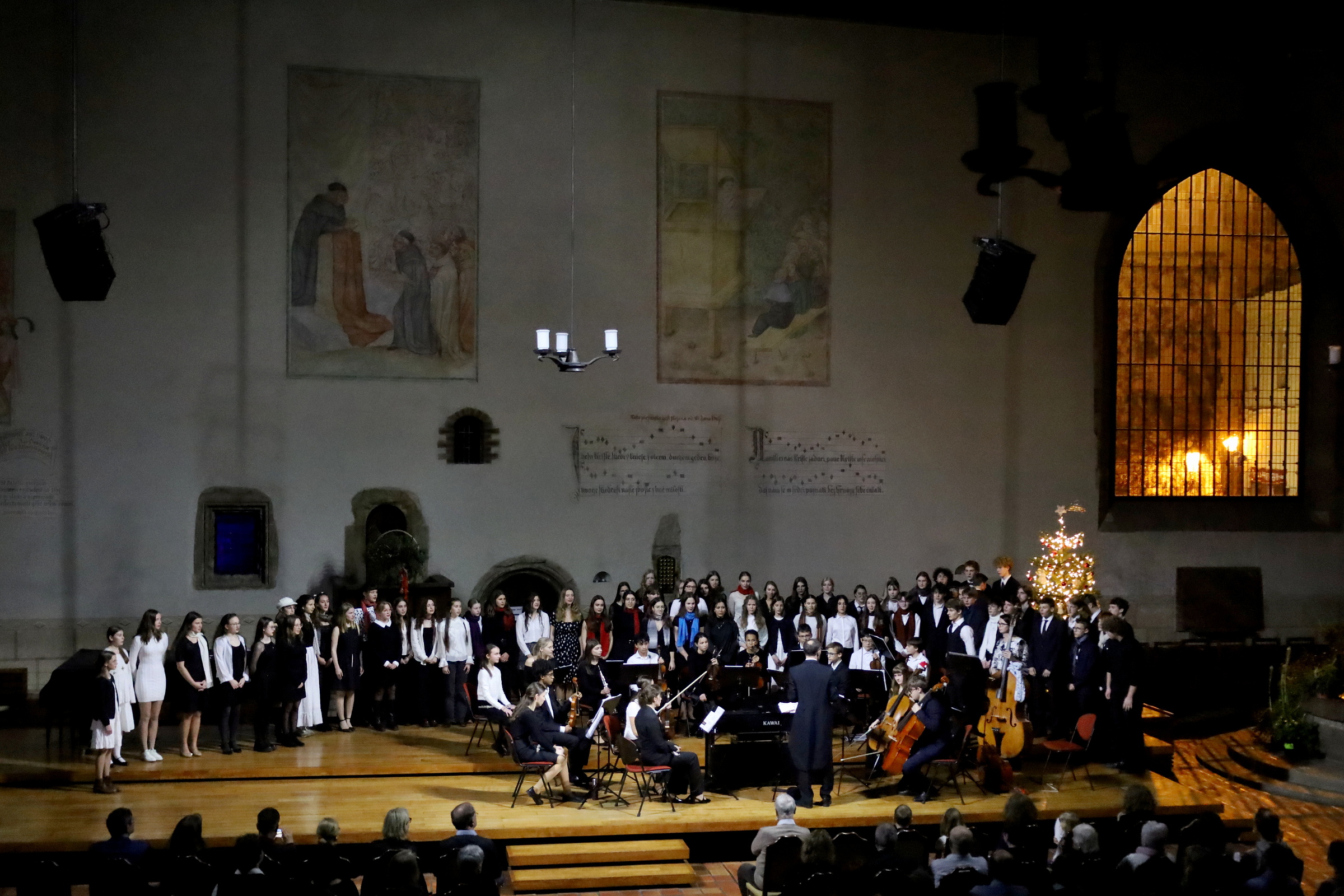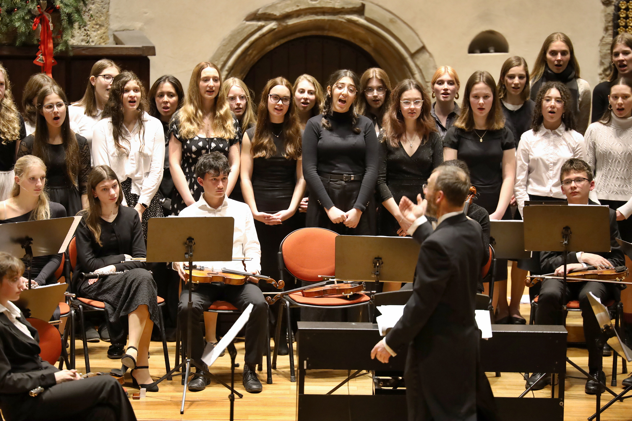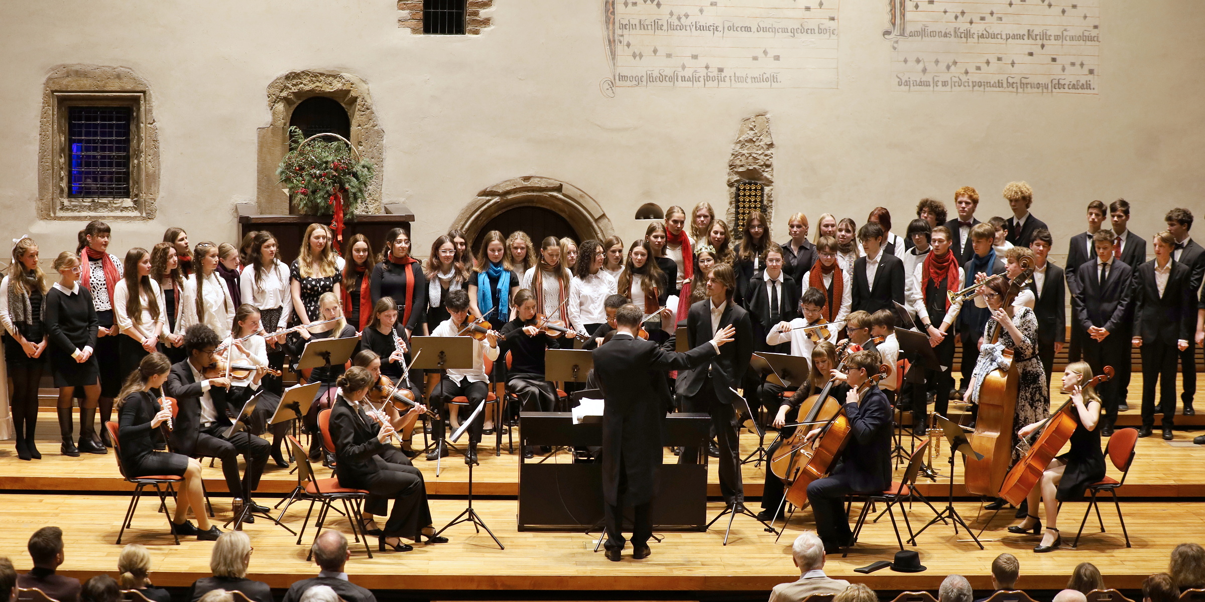 Díky ochotníkům z Vánočního divadelního souboru, Příležitostného vánočního sboru a Komorního orchestru GJN jsme 9. 12. 2025 opět naplnili Betlémskou kapli a dopřáli si nádherný adventní zážitek. Děkujeme prof. Vítu Kubánkovi za neutuchající úsilí ve vedení sboru a orchestru, prof. Filipu H. Hrtelovi a paní ředitelce Zuzaně Wienerové za režii Rakovnické vánoční hry a samozřejmě všem studentkám a studentům, kteří tuto nádheru nazkoušeli. A těšíme se na malou ozvěnu v podobě pátečního zpívání na schodech.