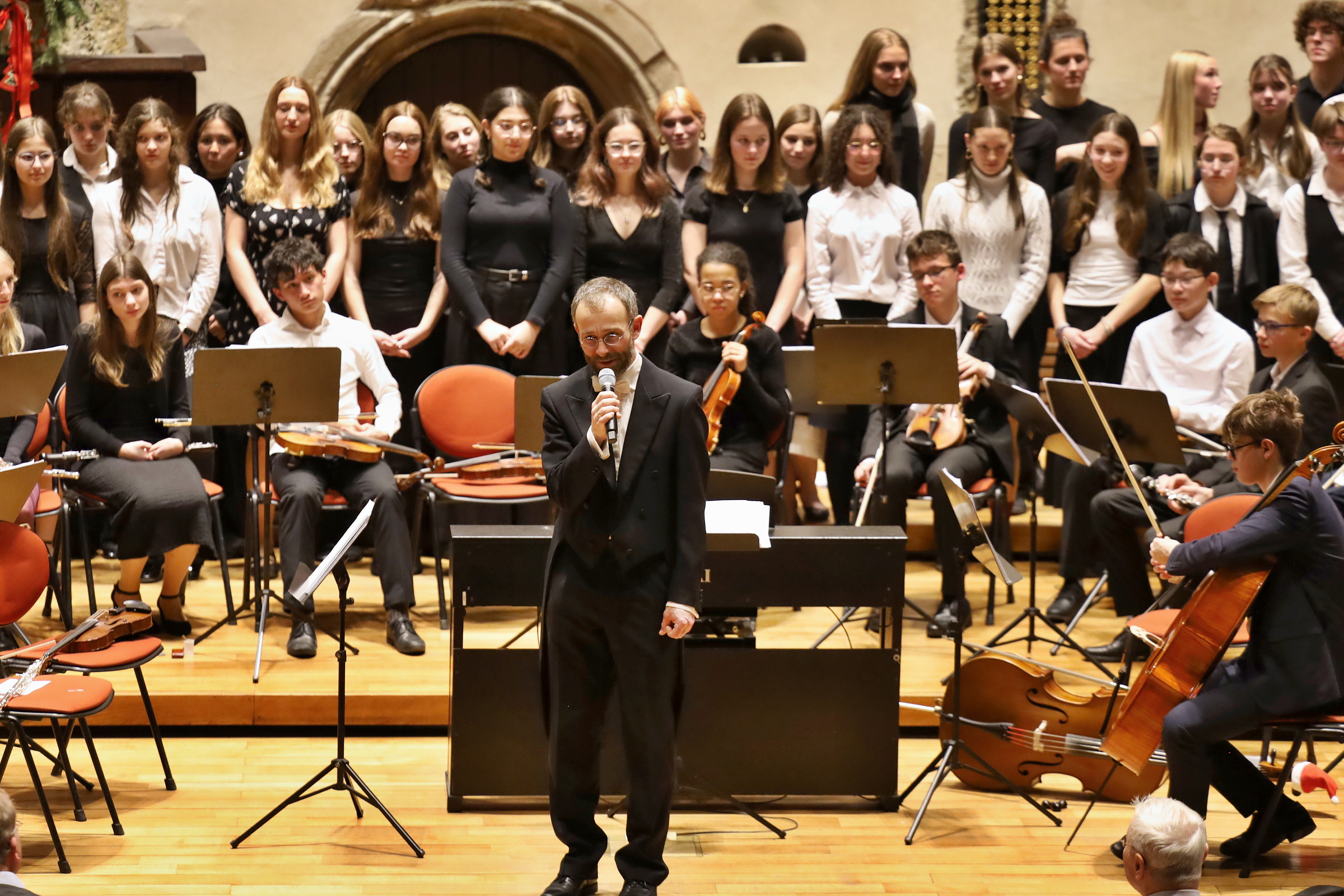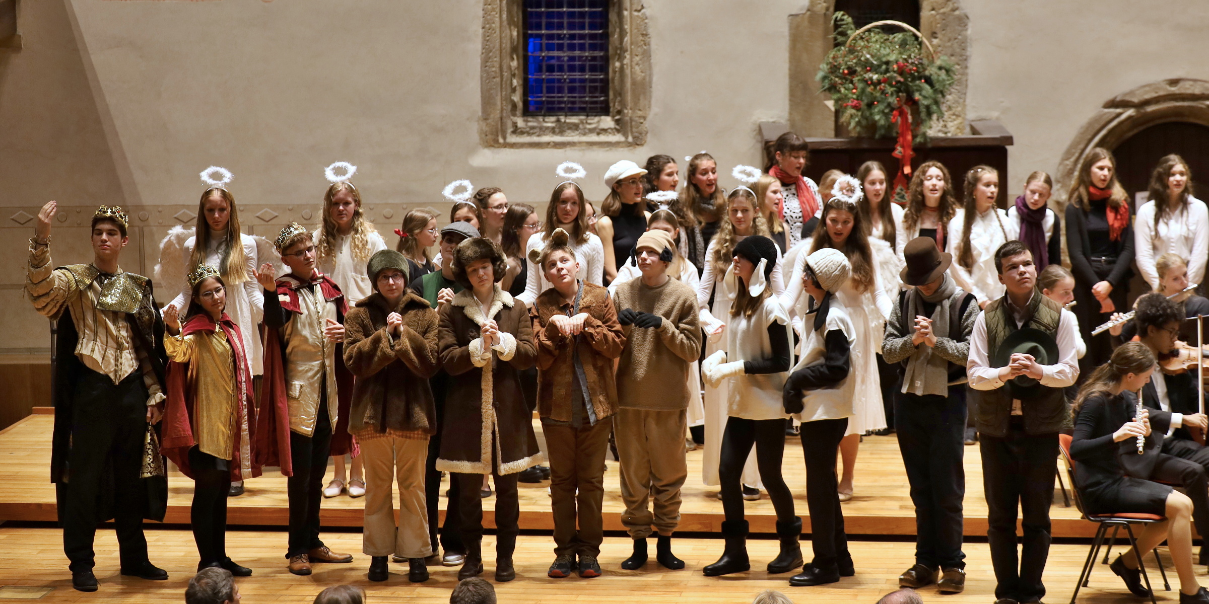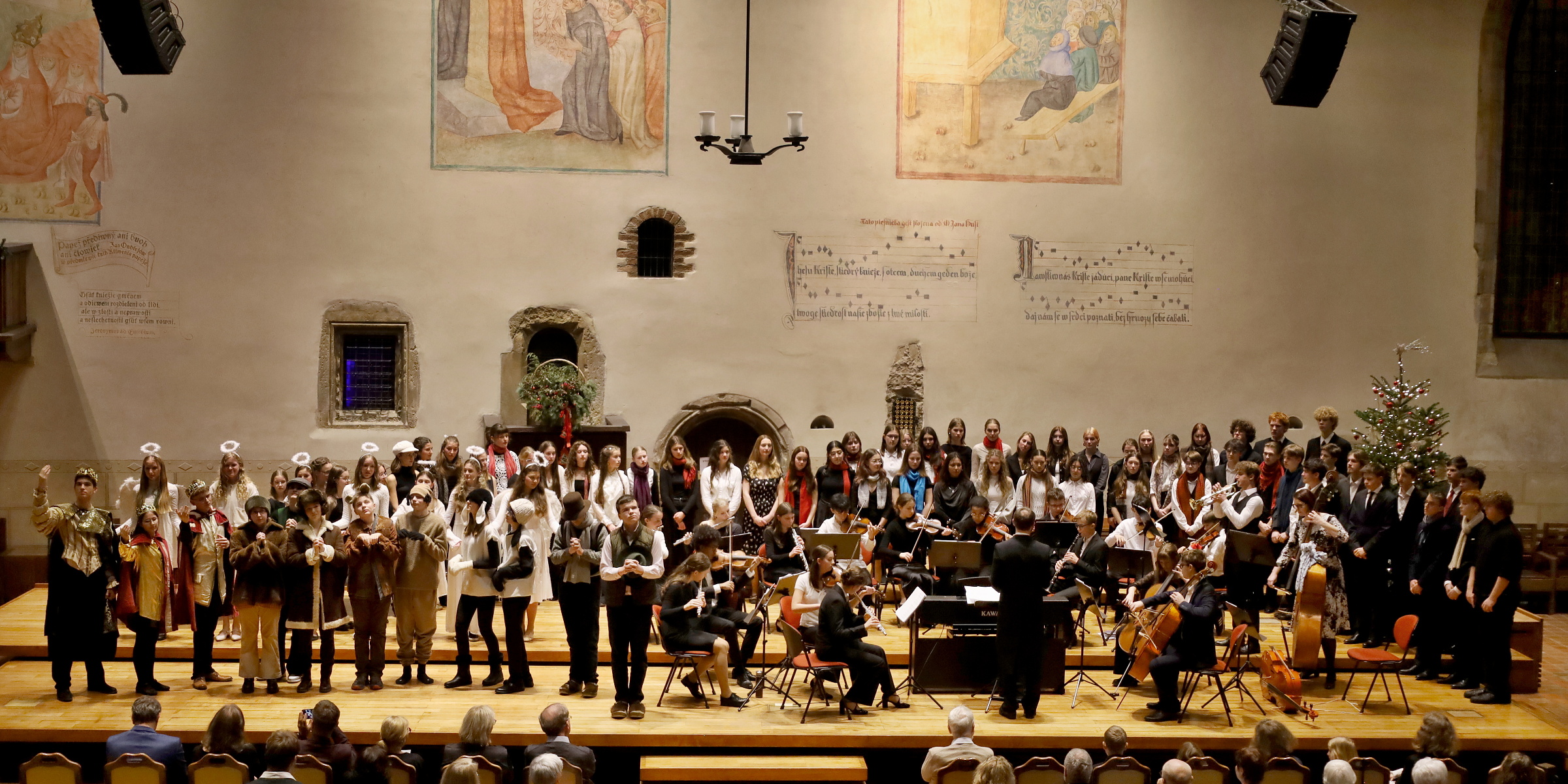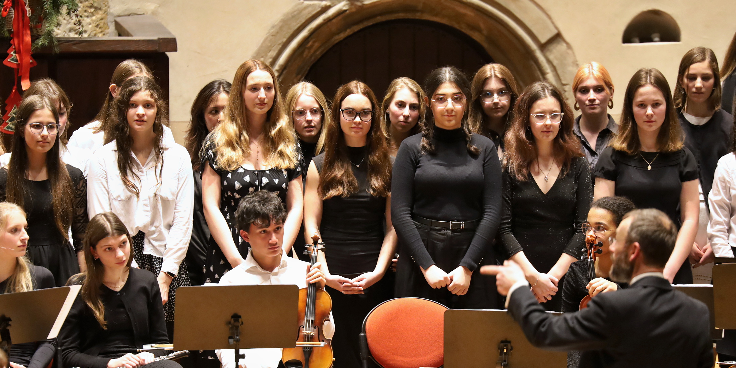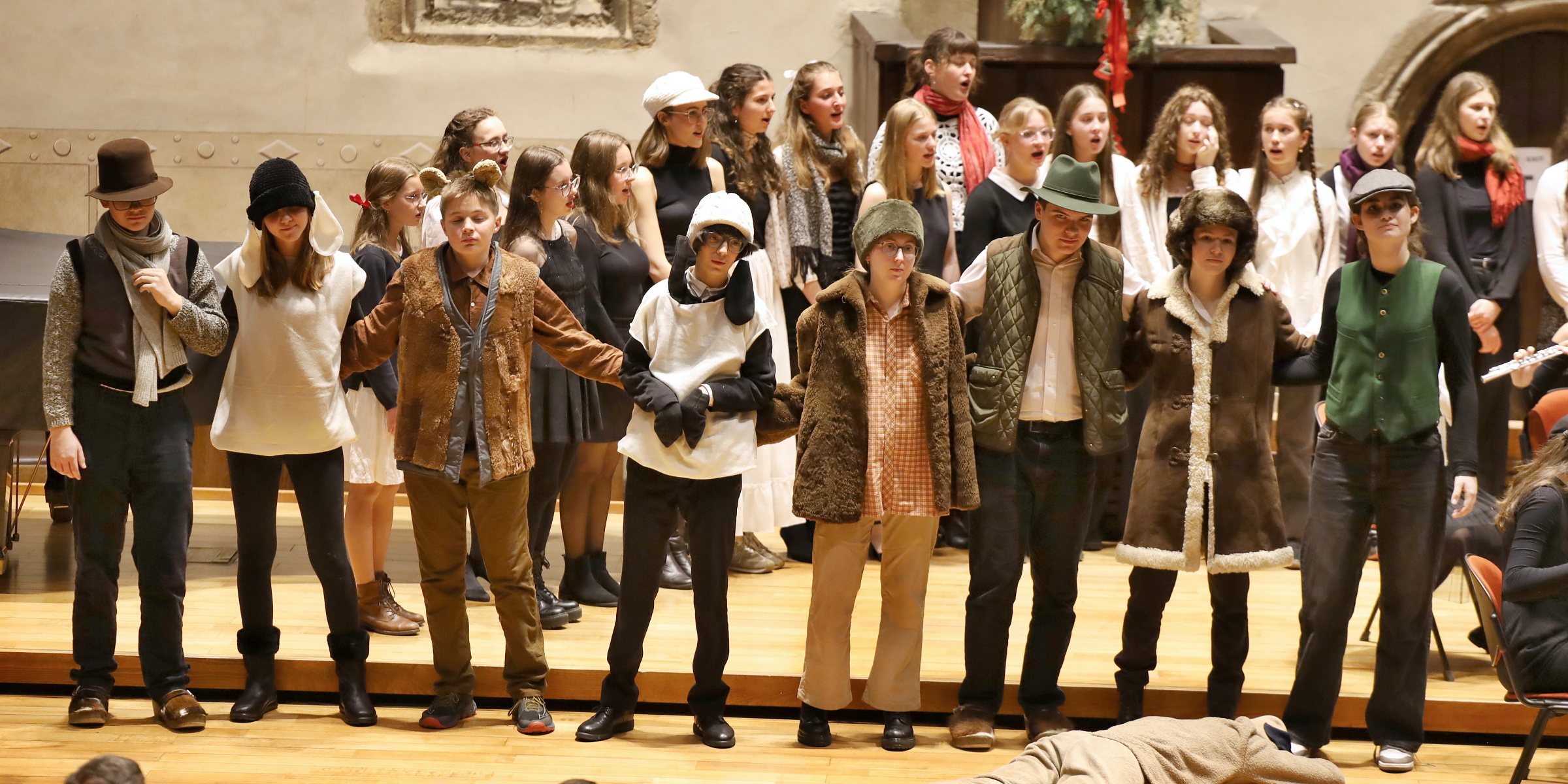 Díky ochotníkům z Vánočního divadelního souboru, Příležitostného vánočního sboru a Komorního orchestru GJN jsme 9. 12. 2025 opět naplnili Betlémskou kapli a dopřáli si nádherný adventní zážitek. Děkujeme prof. Vítu Kubánkovi za neutuchající úsilí ve vedení sboru a orchestru, prof. Filipu H. Hrtelovi a paní ředitelce Zuzaně Wienerové za režii Rakovnické vánoční hry a samozřejmě všem studentkám a studentům, kteří tuto nádheru nazkoušeli. A těšíme se na malou ozvěnu v podobě pátečního zpívání na schodech.