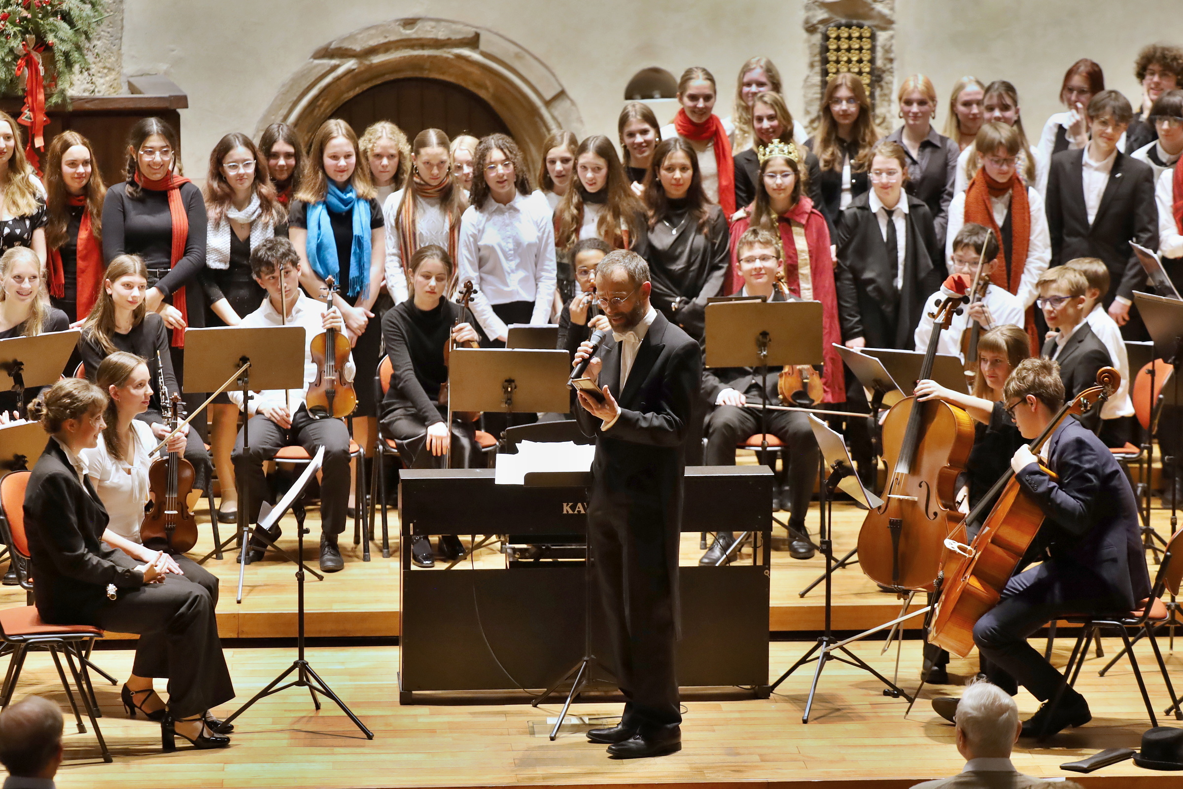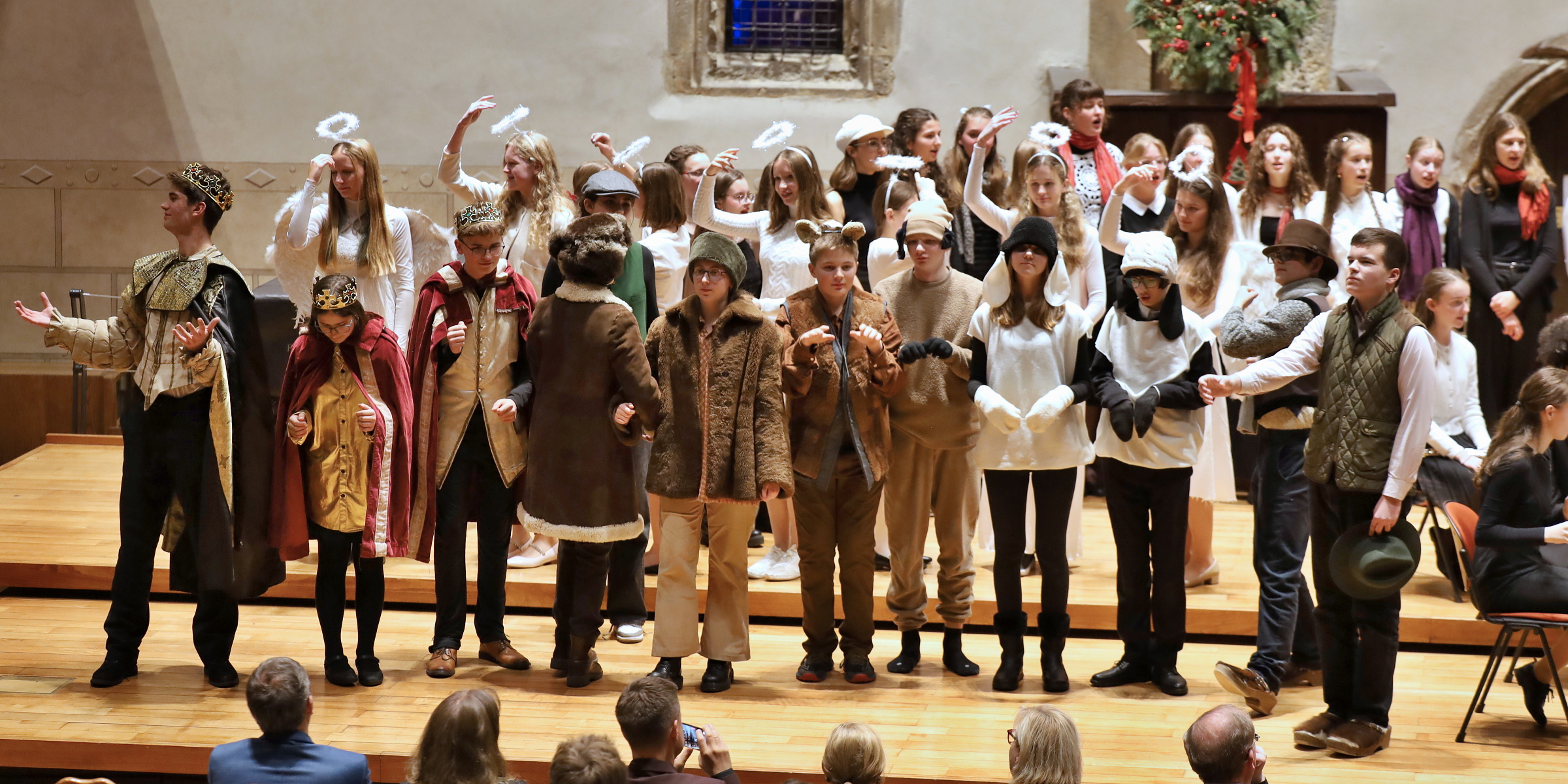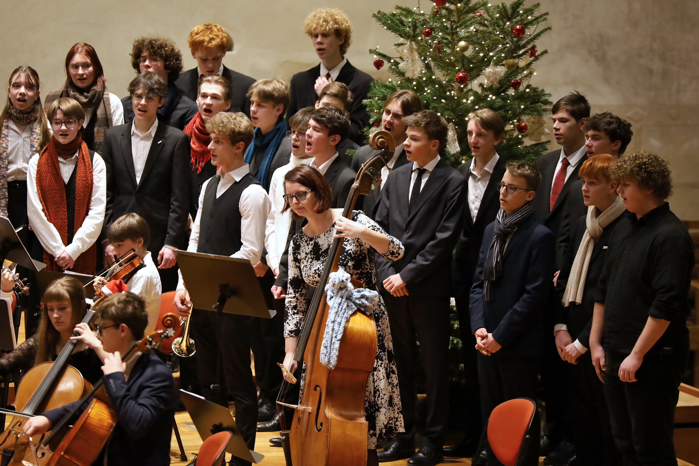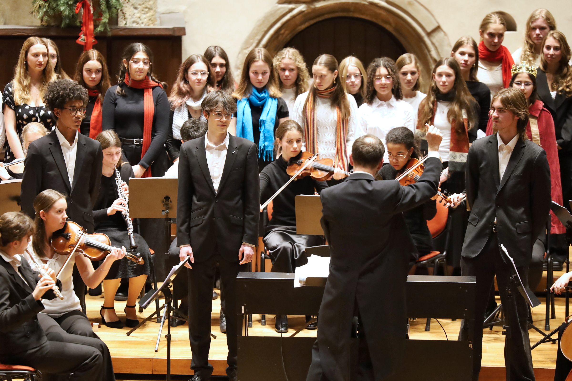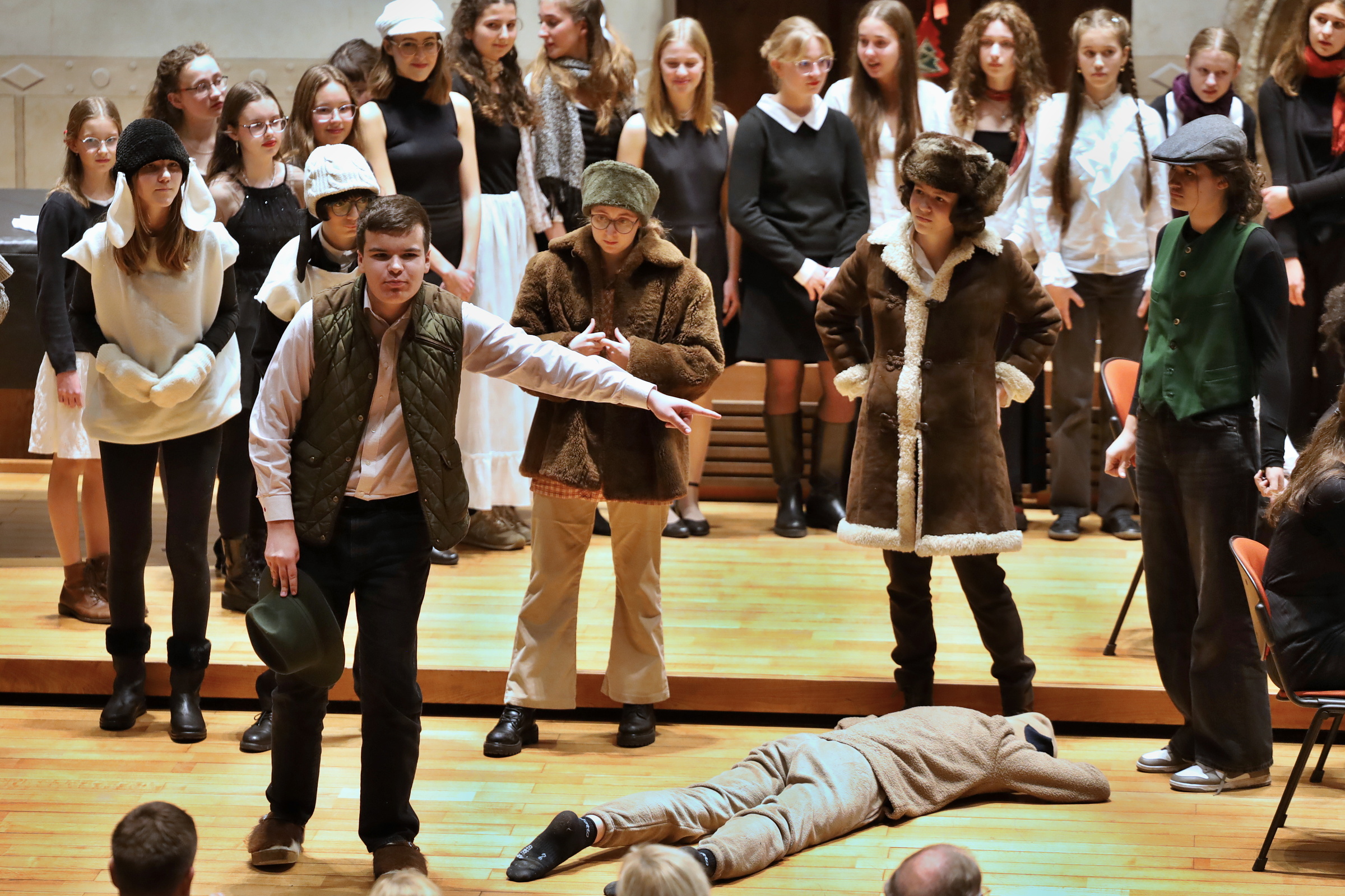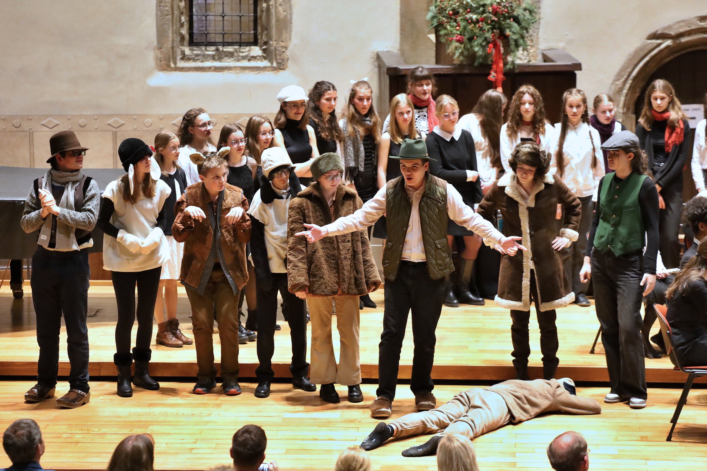 Díky ochotníkům z Vánočního divadelního souboru, Příležitostného vánočního sboru a Komorního orchestru GJN jsme 9. 12. 2025 opět naplnili Betlémskou kapli a dopřáli si nádherný adventní zážitek. Děkujeme prof. Vítu Kubánkovi za neutuchající úsilí ve vedení sboru a orchestru, prof. Filipu H. Hrtelovi a paní ředitelce Zuzaně Wienerové za režii Rakovnické vánoční hry a samozřejmě všem studentkám a studentům, kteří tuto nádheru nazkoušeli. A těšíme se na malou ozvěnu v podobě pátečního zpívání na schodech.