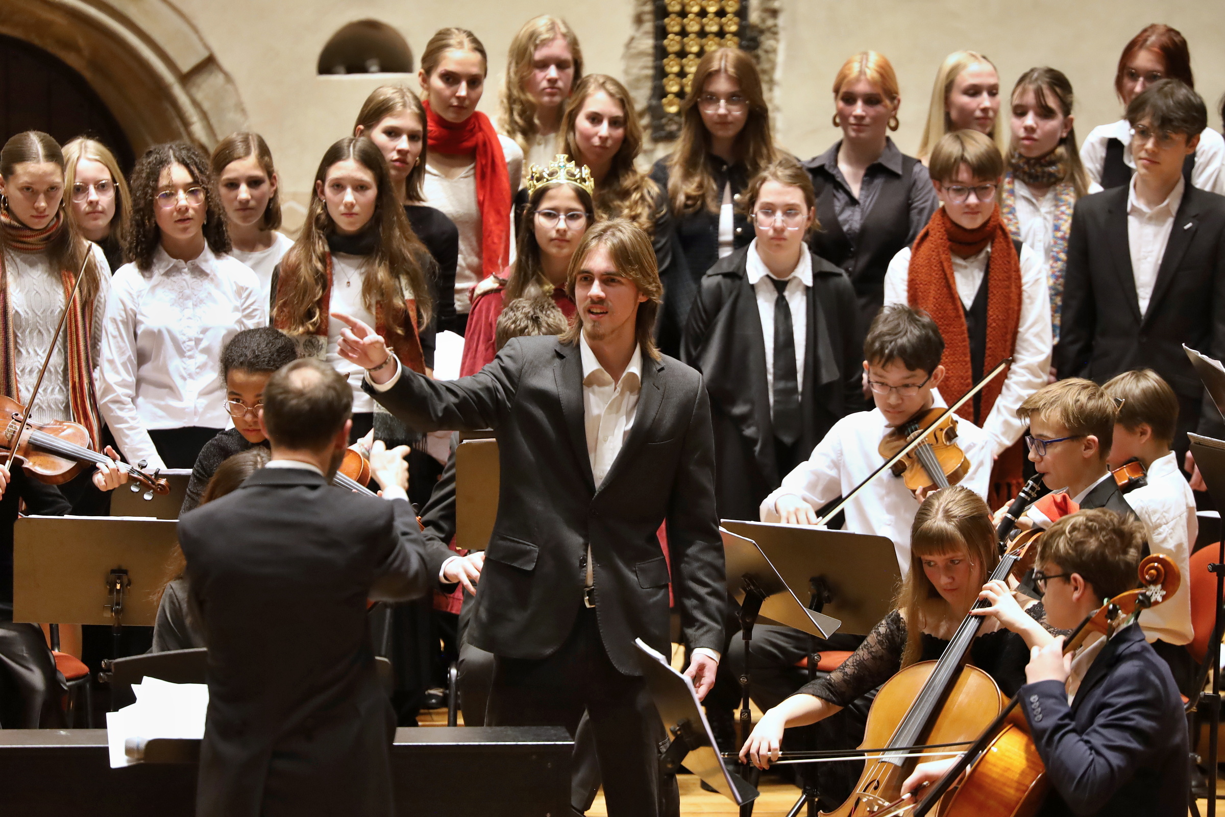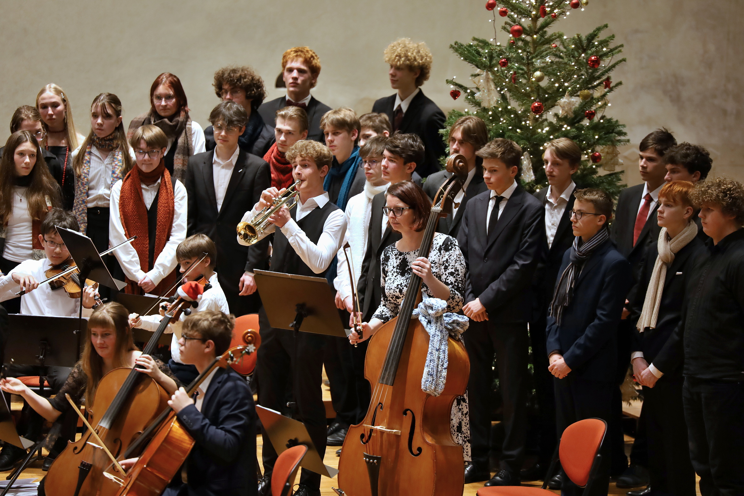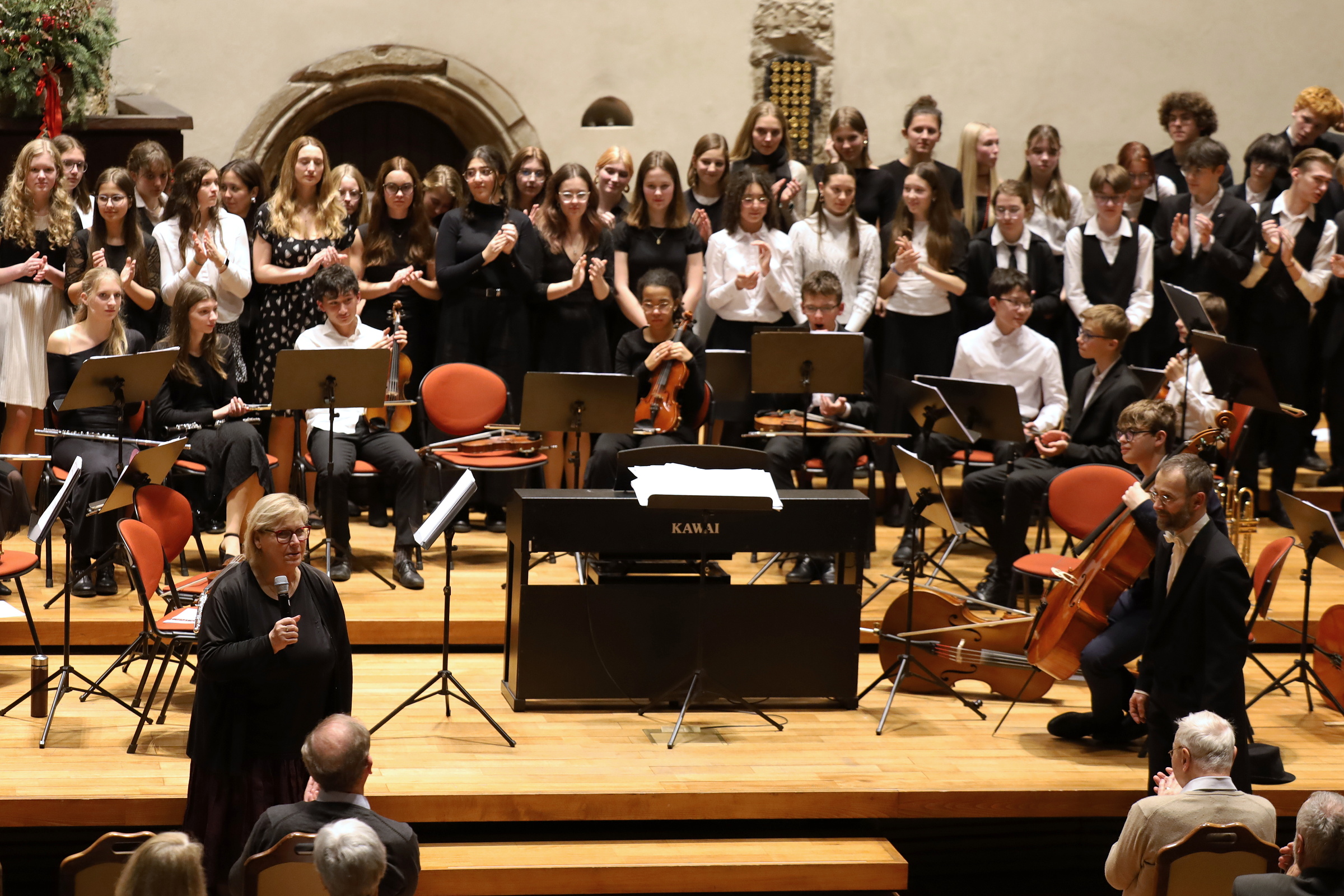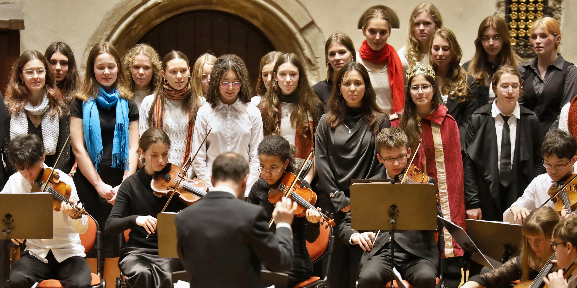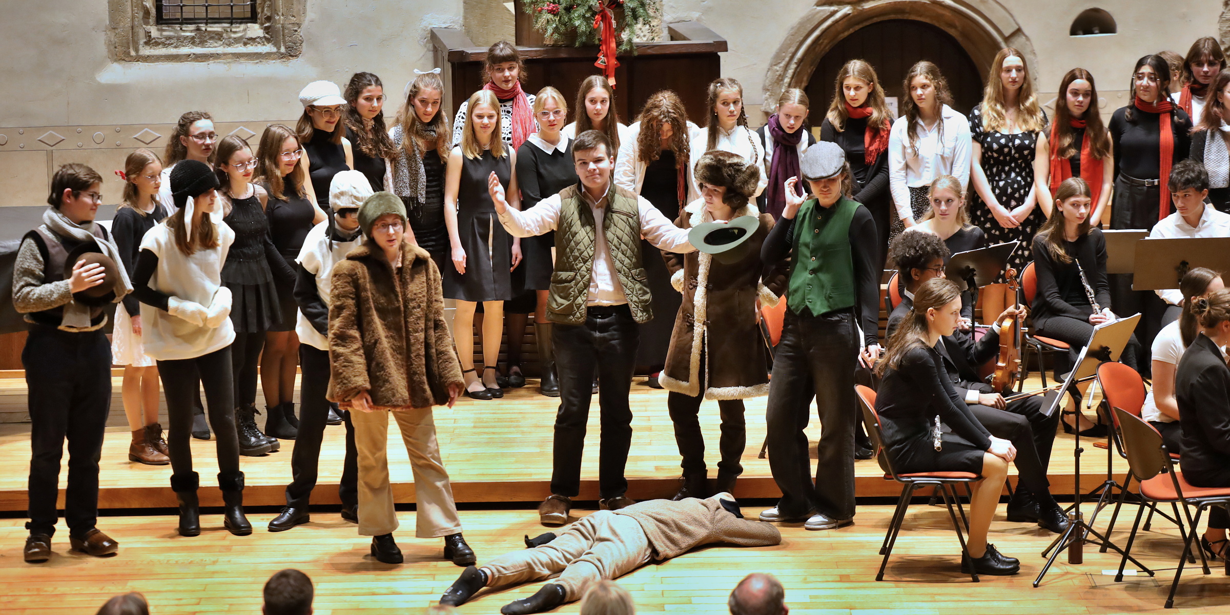 Díky ochotníkům z Vánočního divadelního souboru, Příležitostného vánočního sboru a Komorního orchestru GJN jsme 9. 12. 2025 opět naplnili Betlémskou kapli a dopřáli si nádherný adventní zážitek. Děkujeme prof. Vítu Kubánkovi za neutuchající úsilí ve vedení sboru a orchestru, prof. Filipu H. Hrtelovi a paní ředitelce Zuzaně Wienerové za režii Rakovnické vánoční hry a samozřejmě všem studentkám a studentům, kteří tuto nádheru nazkoušeli. A těšíme se na malou ozvěnu v podobě pátečního zpívání na schodech.