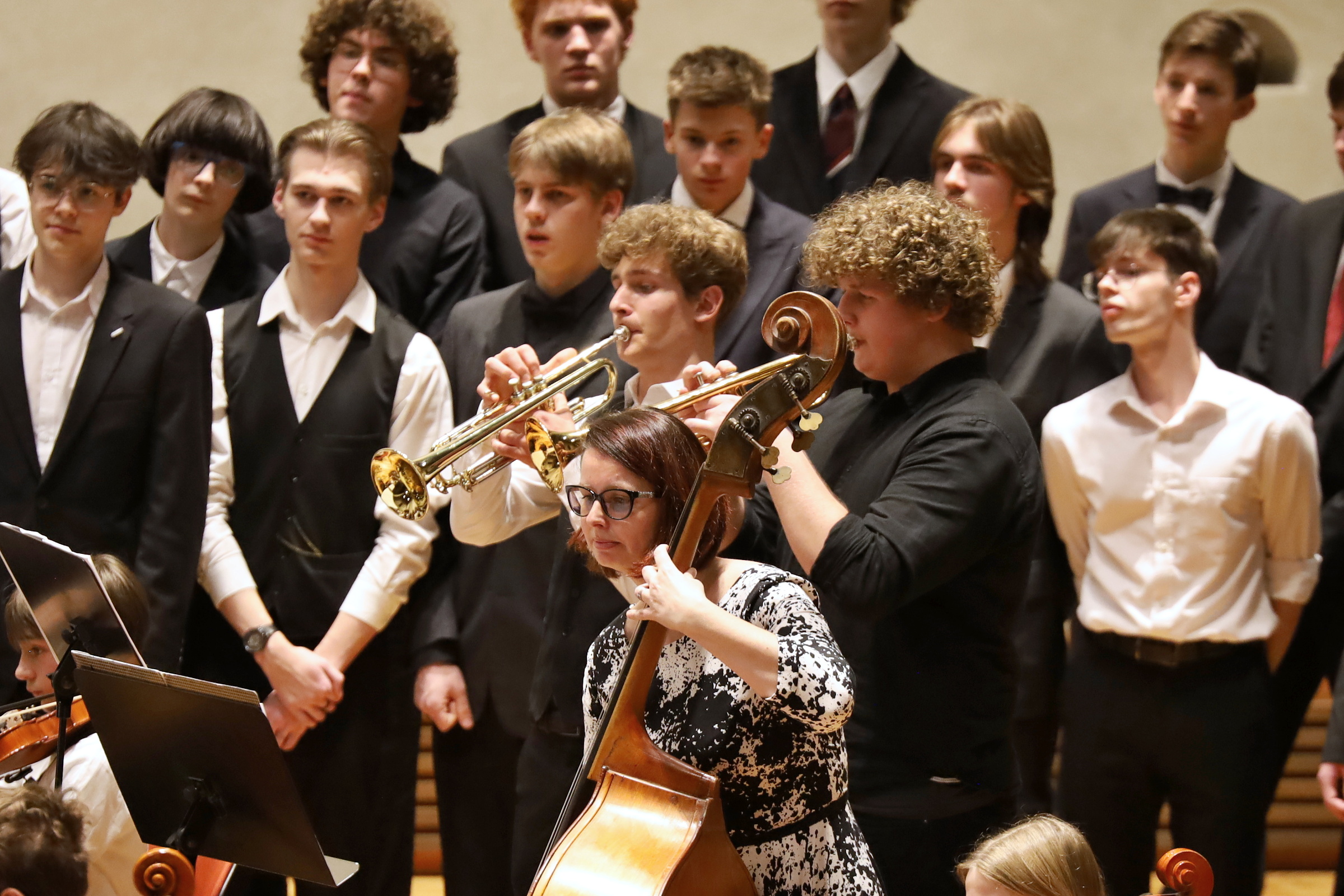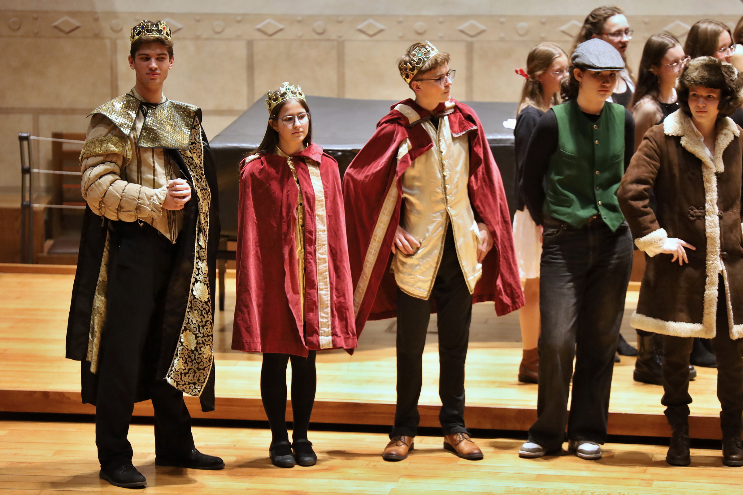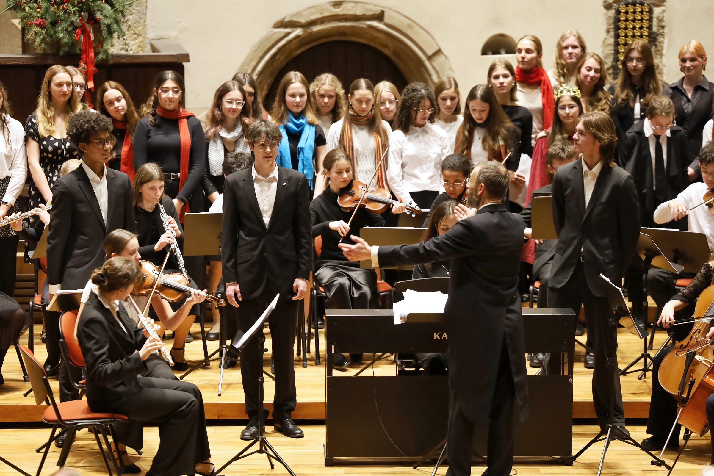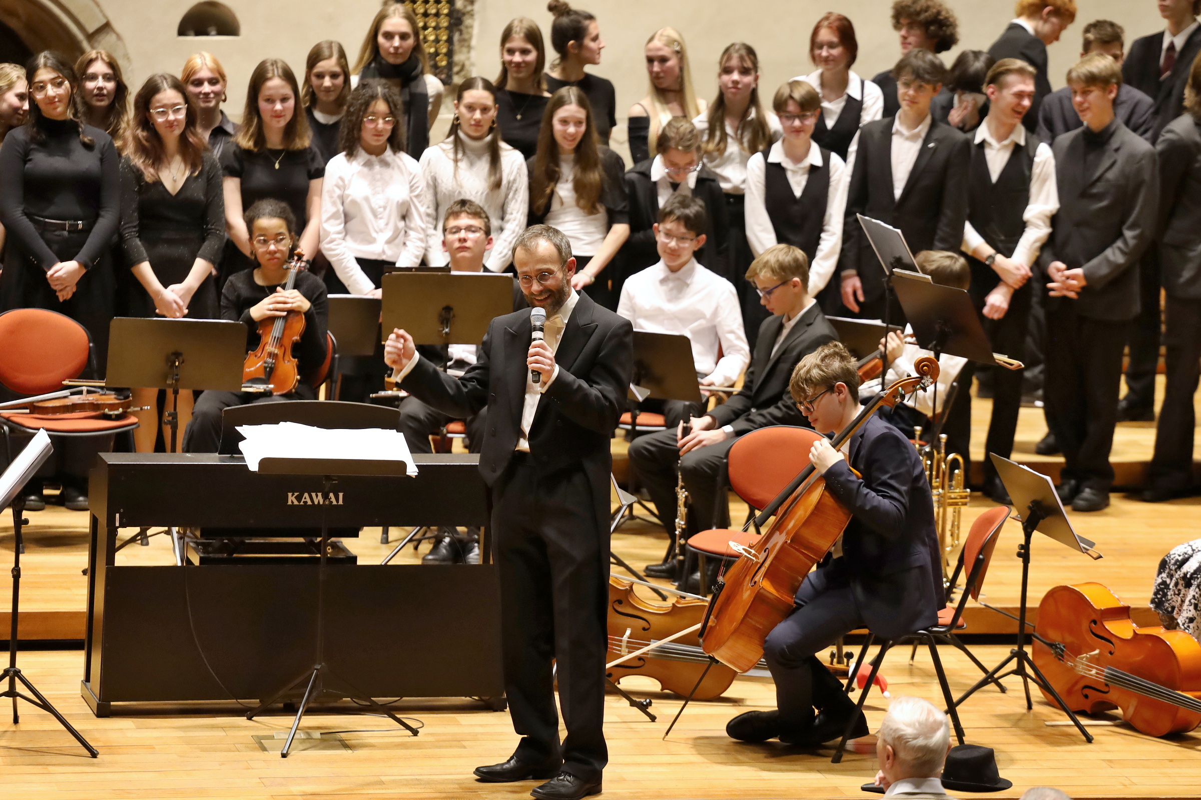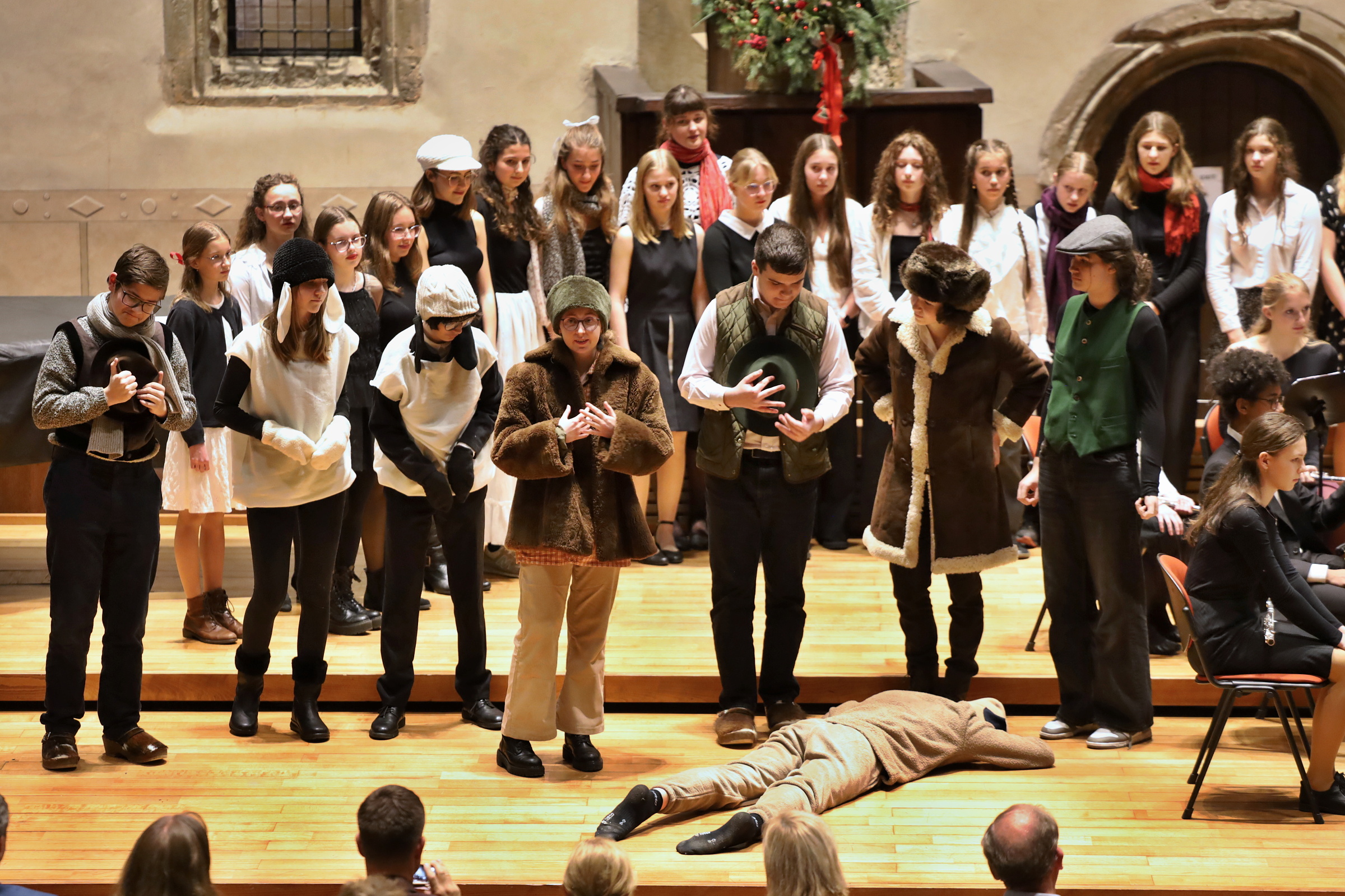 Díky ochotníkům z Vánočního divadelního souboru, Příležitostného vánočního sboru a Komorního orchestru GJN jsme 9. 12. 2025 opět naplnili Betlémskou kapli a dopřáli si nádherný adventní zážitek. Děkujeme prof. Vítu Kubánkovi za neutuchající úsilí ve vedení sboru a orchestru, prof. Filipu H. Hrtelovi a paní ředitelce Zuzaně Wienerové za režii Rakovnické vánoční hry a samozřejmě všem studentkám a studentům, kteří tuto nádheru nazkoušeli. A těšíme se na malou ozvěnu v podobě pátečního zpívání na schodech.