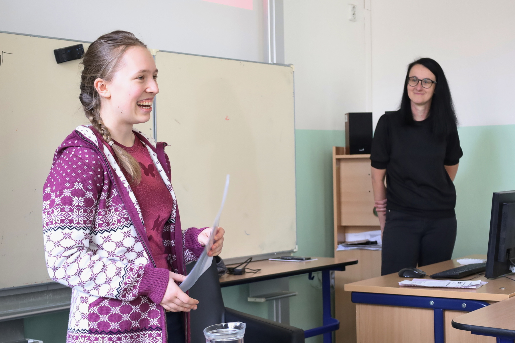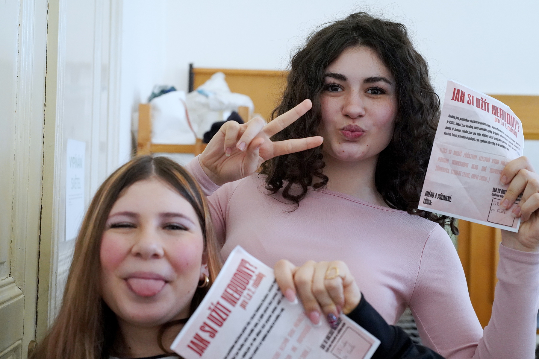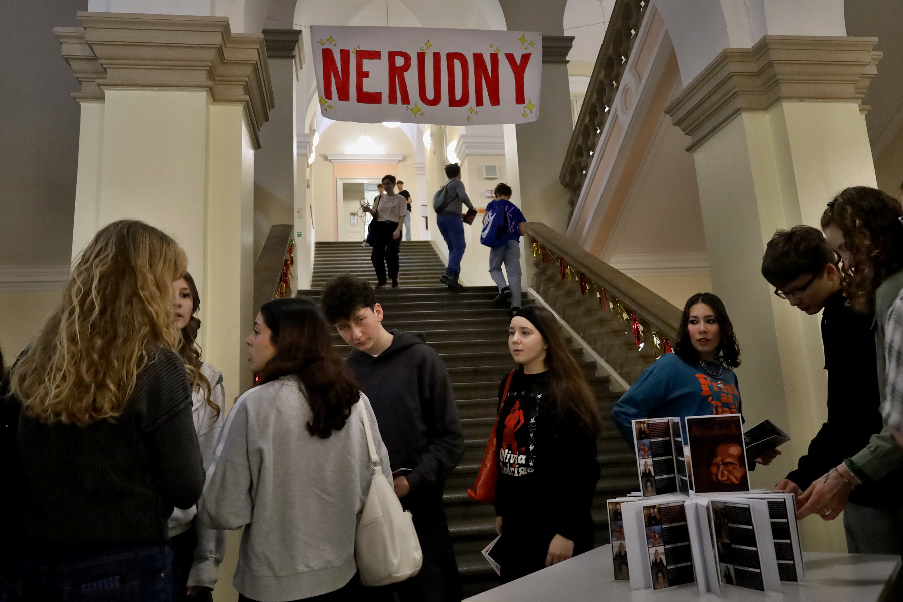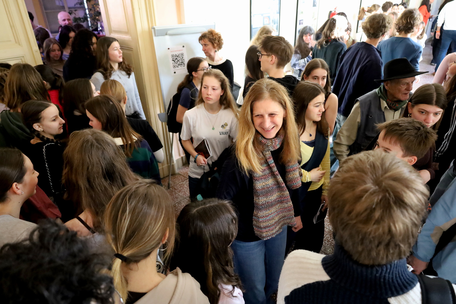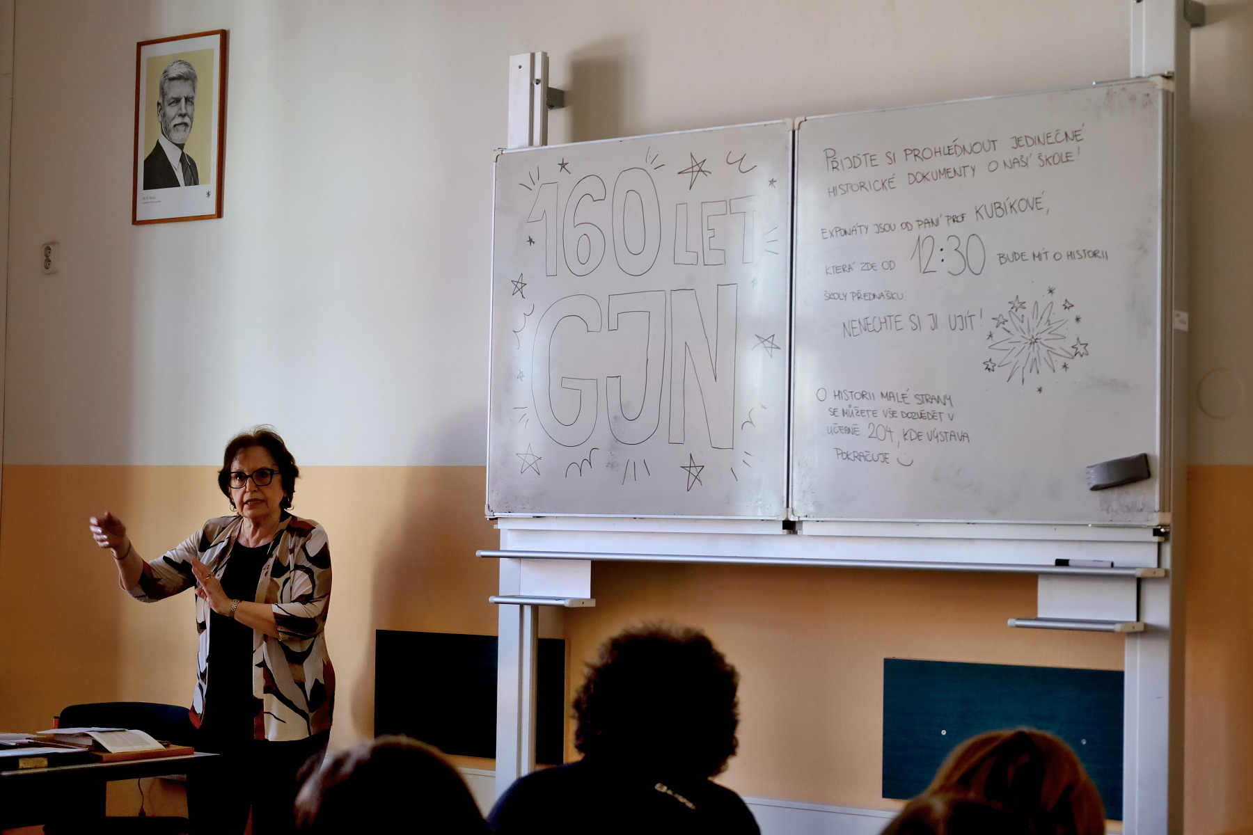 Děkujeme našim vzácným hostům za návštěvu. O zdar NeruDnů se zasloužily desítky studentek a studentů. Za všechny jmenovitě poděkujme aspoň dvěma hlavním organizátorkám, Naty Faryadové a Verče Hubáčkové z 6.C. Skvělá práce, díky mockrát!