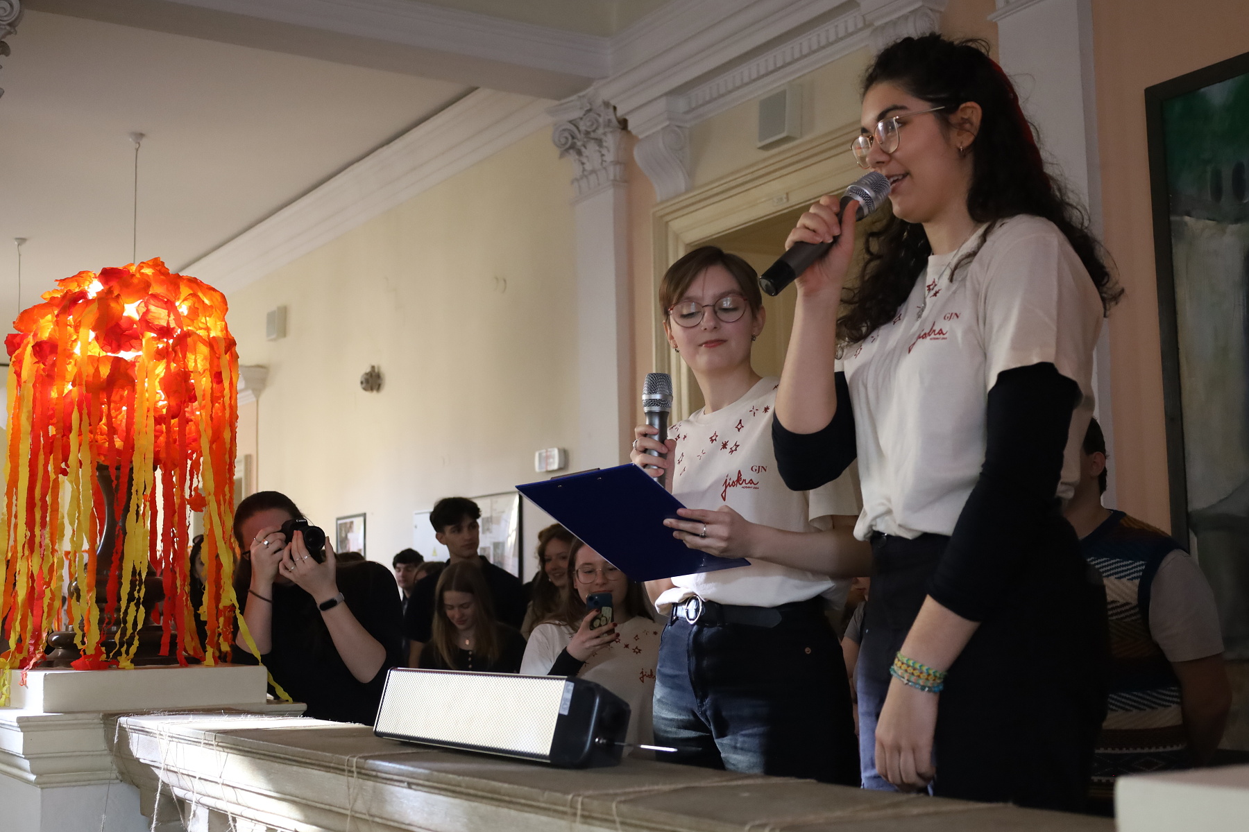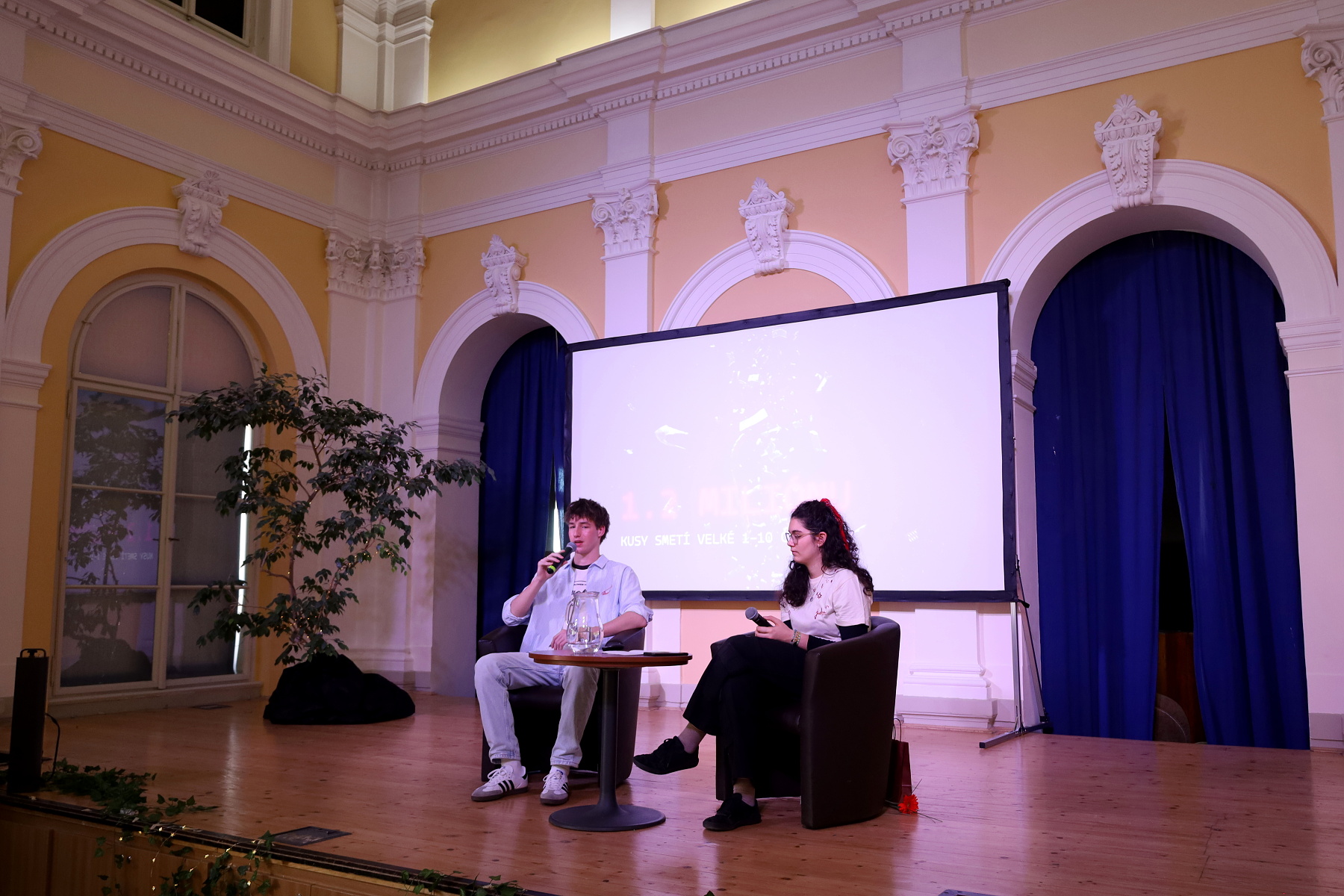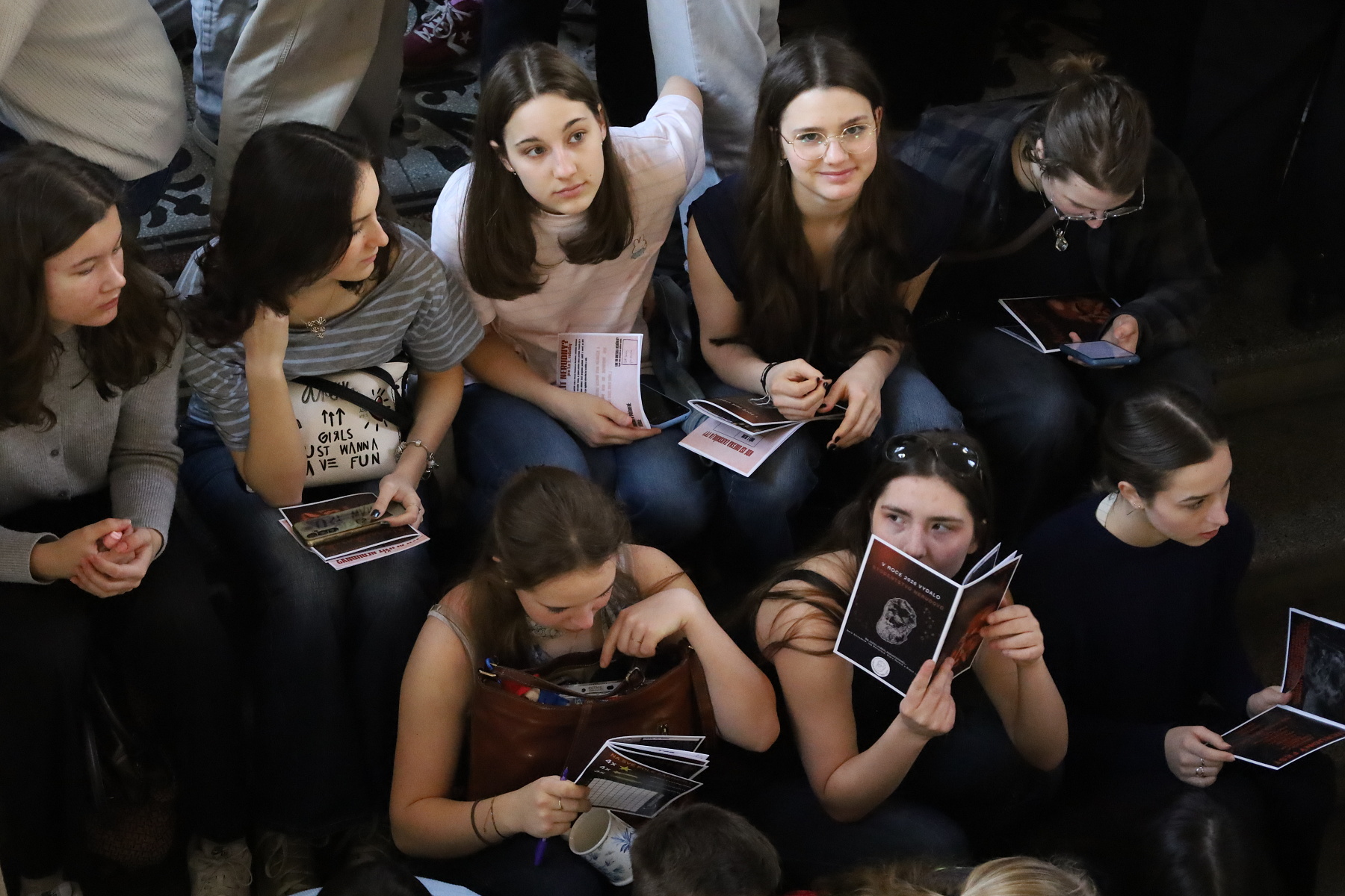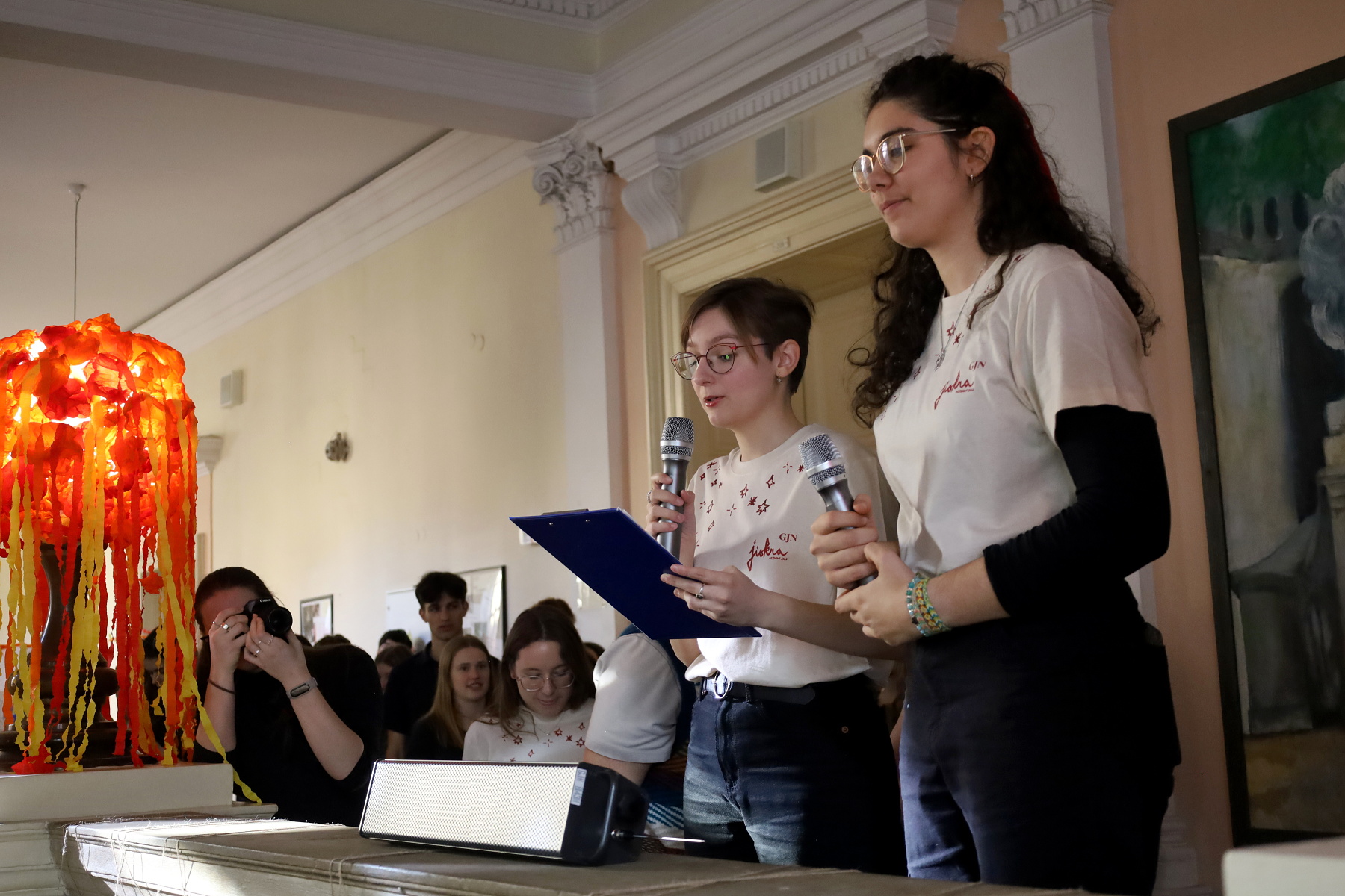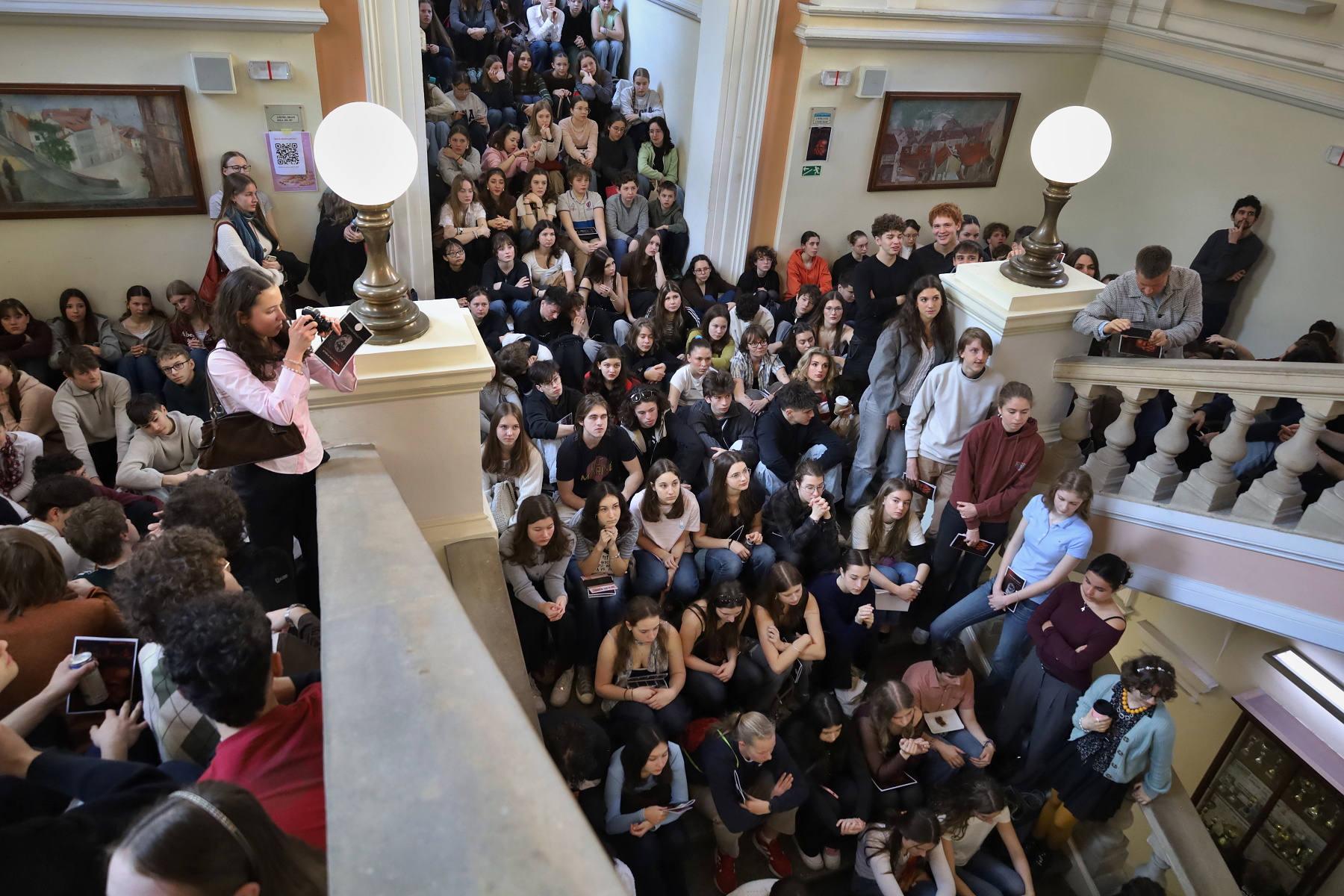 Děkujeme našim vzácným hostům za návštěvu. O zdar NeruDnů se zasloužily desítky studentek a studentů. Za všechny jmenovitě poděkujme aspoň dvěma hlavním organizátorkám, Naty Faryadové a Verče Hubáčkové z 6.C. Skvělá práce, díky mockrát!