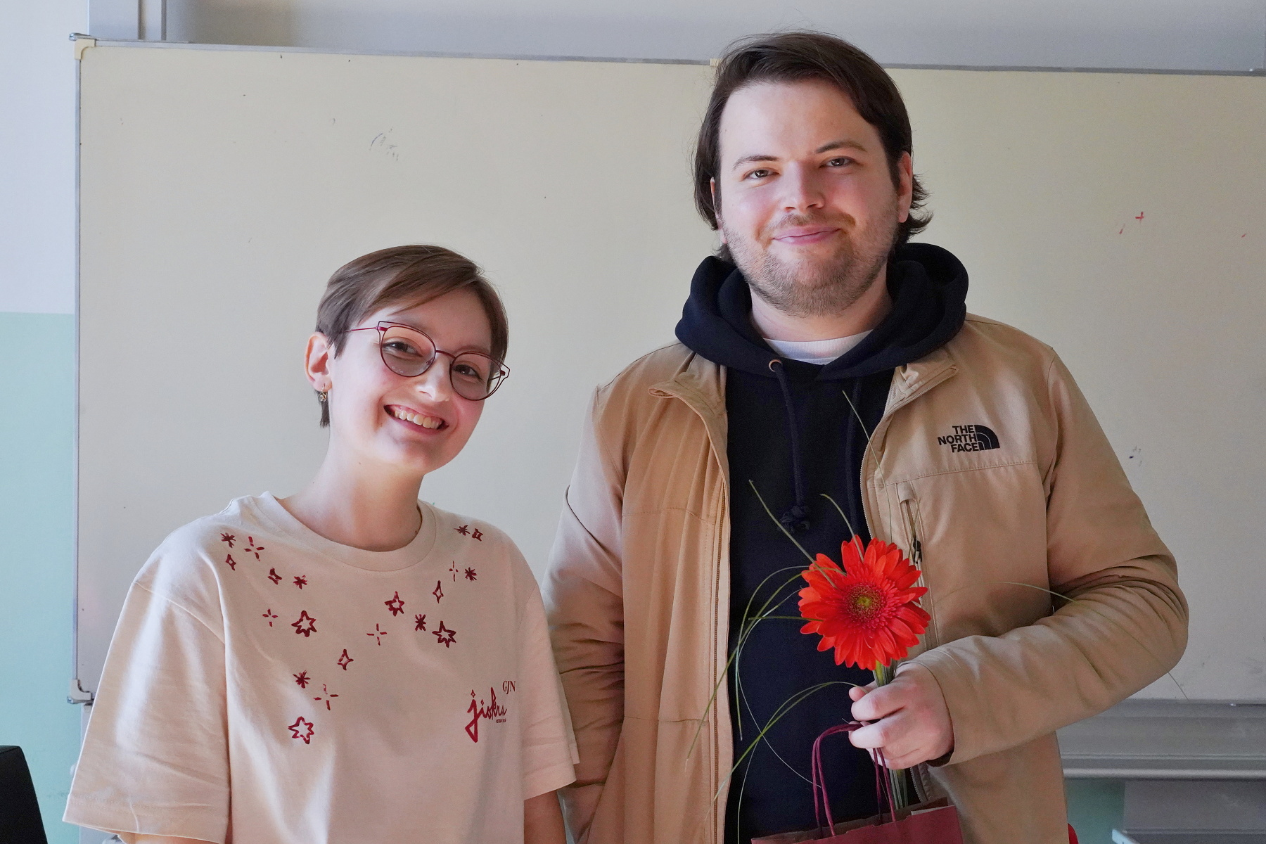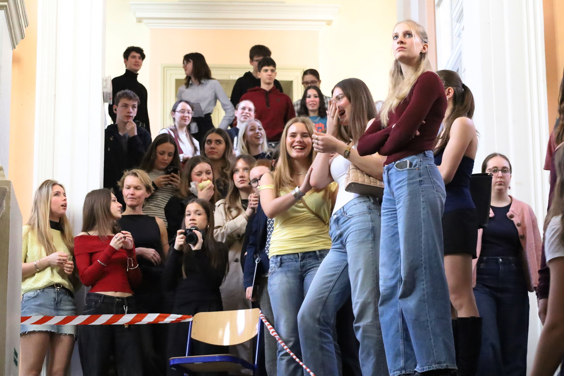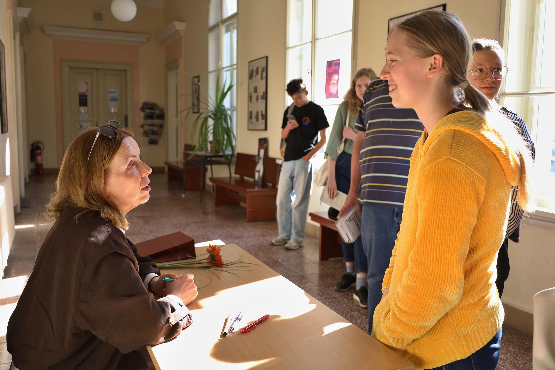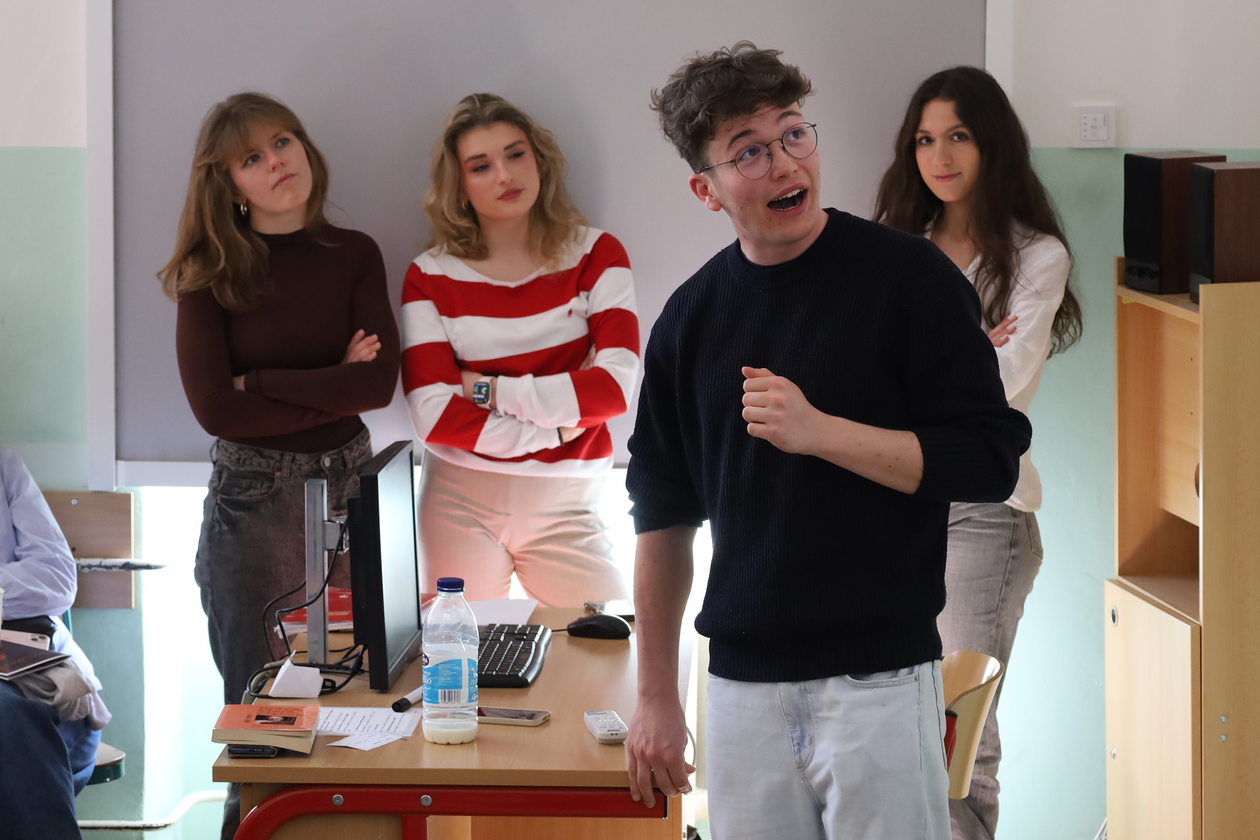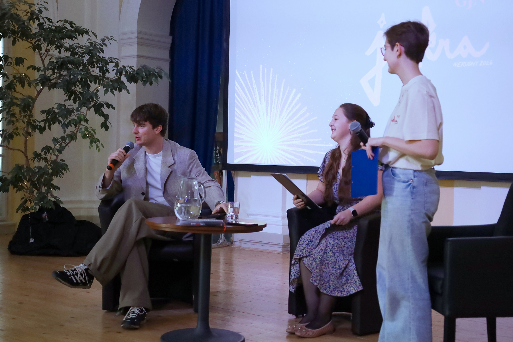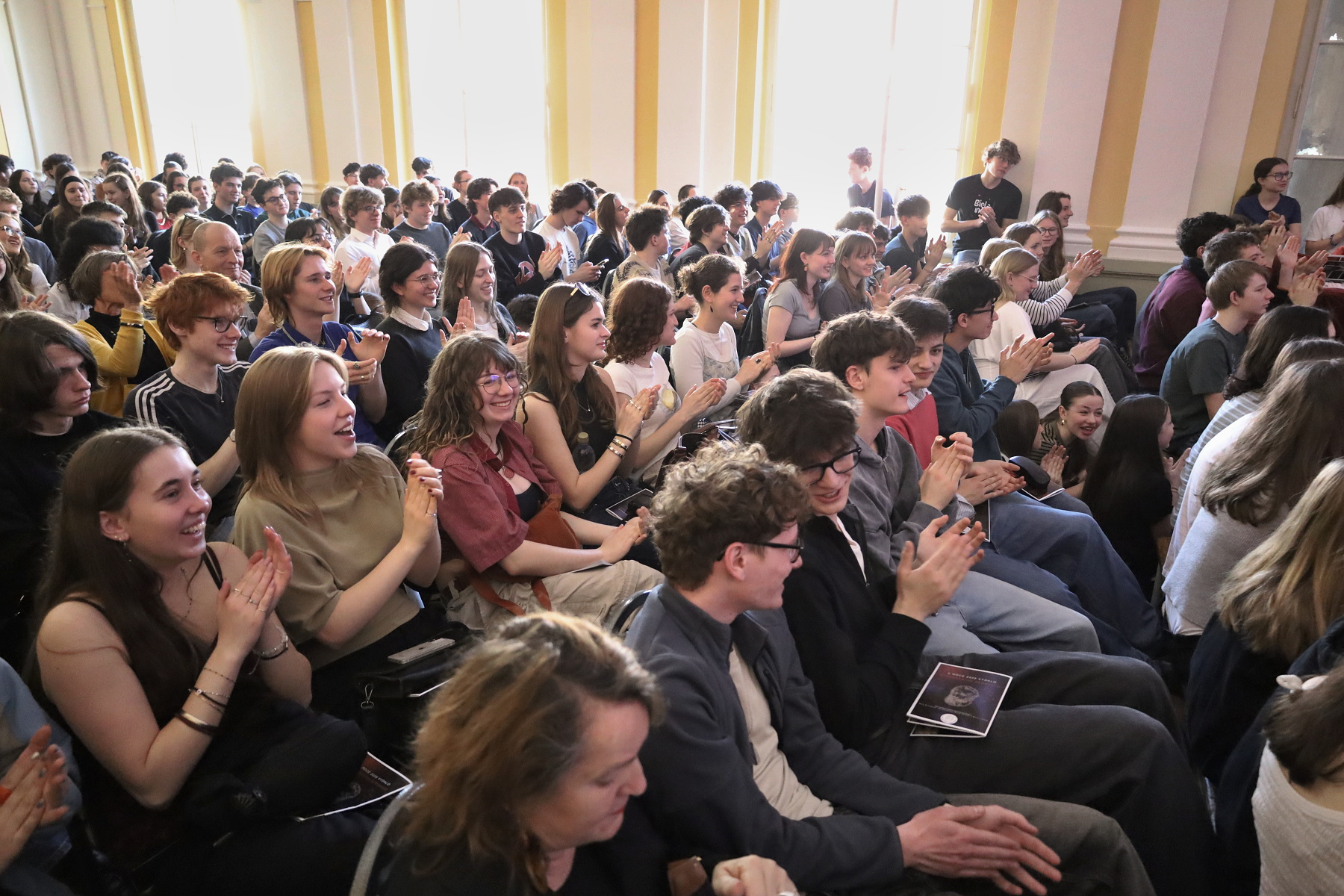 Děkujeme našim vzácným hostům za návštěvu. O zdar NeruDnů se zasloužily desítky studentek a studentů. Za všechny jmenovitě poděkujme aspoň dvěma hlavním organizátorkám, Naty Faryadové a Verče Hubáčkové z 6.C. Skvělá práce, díky mockrát!