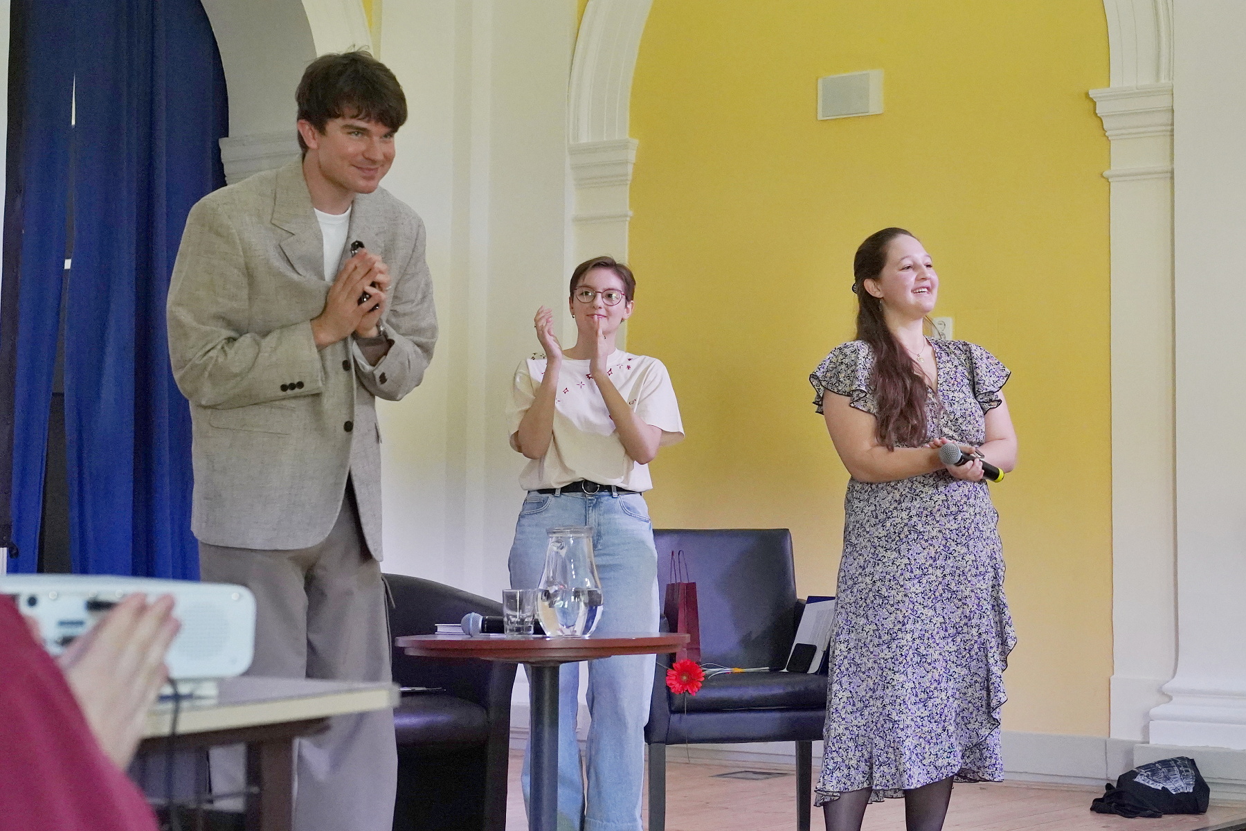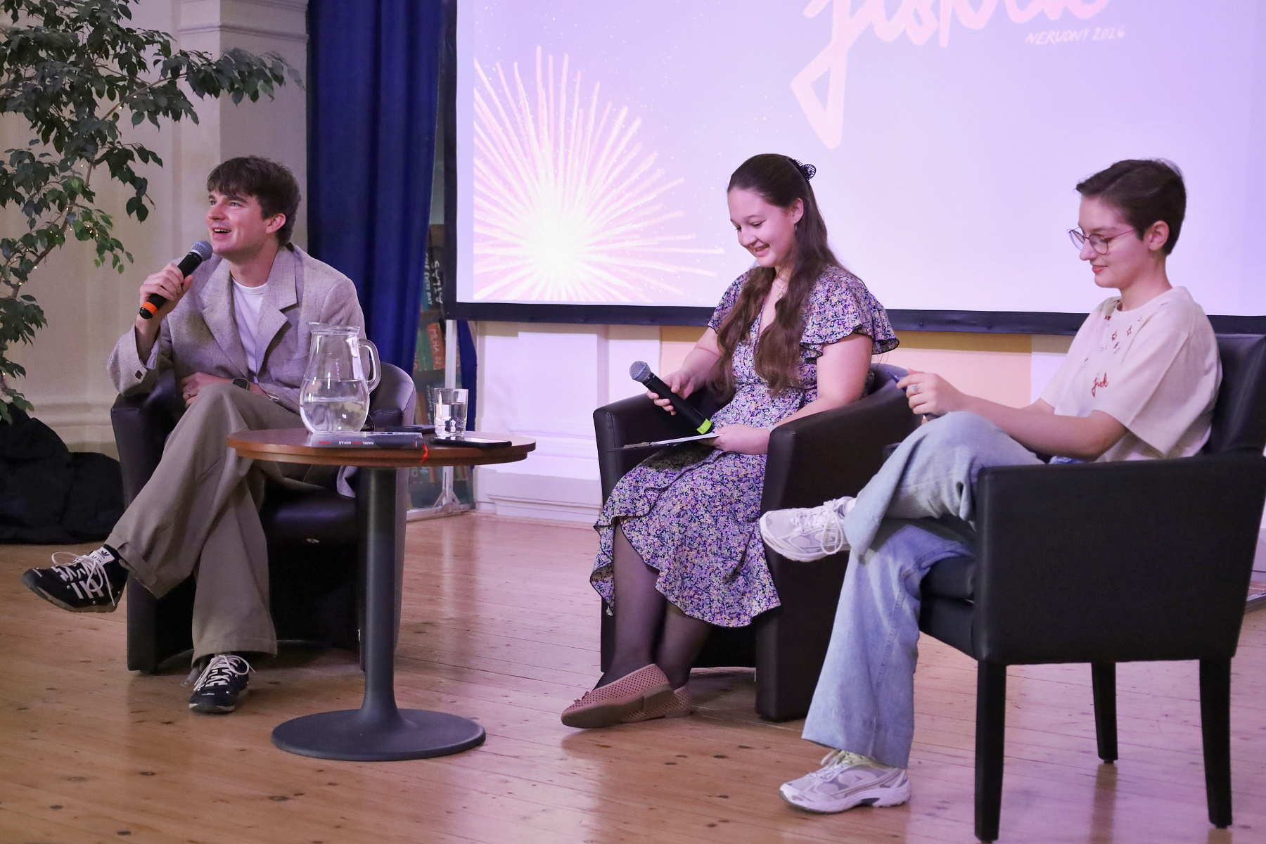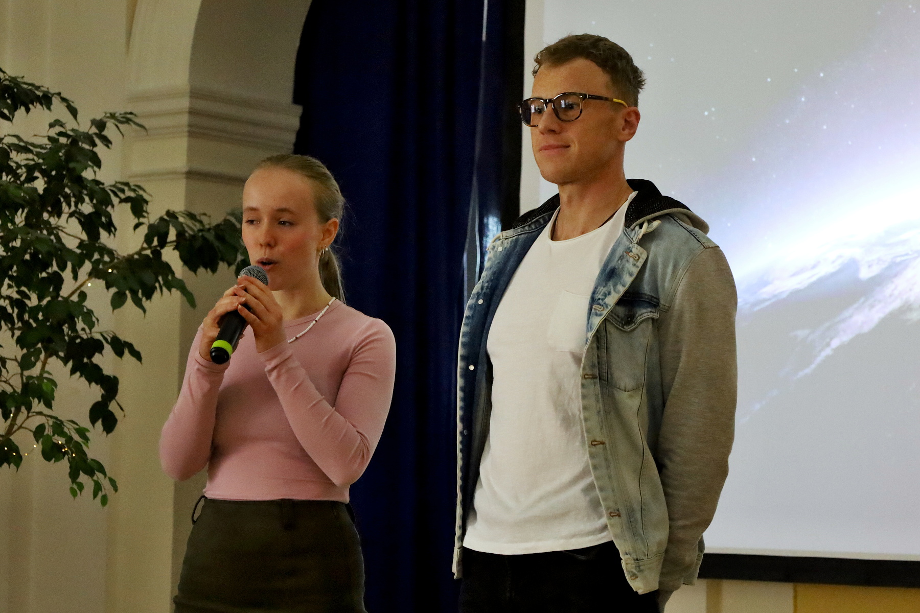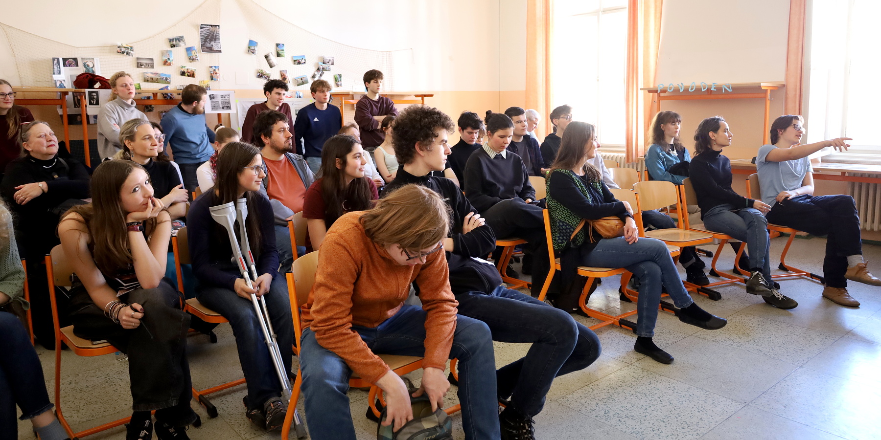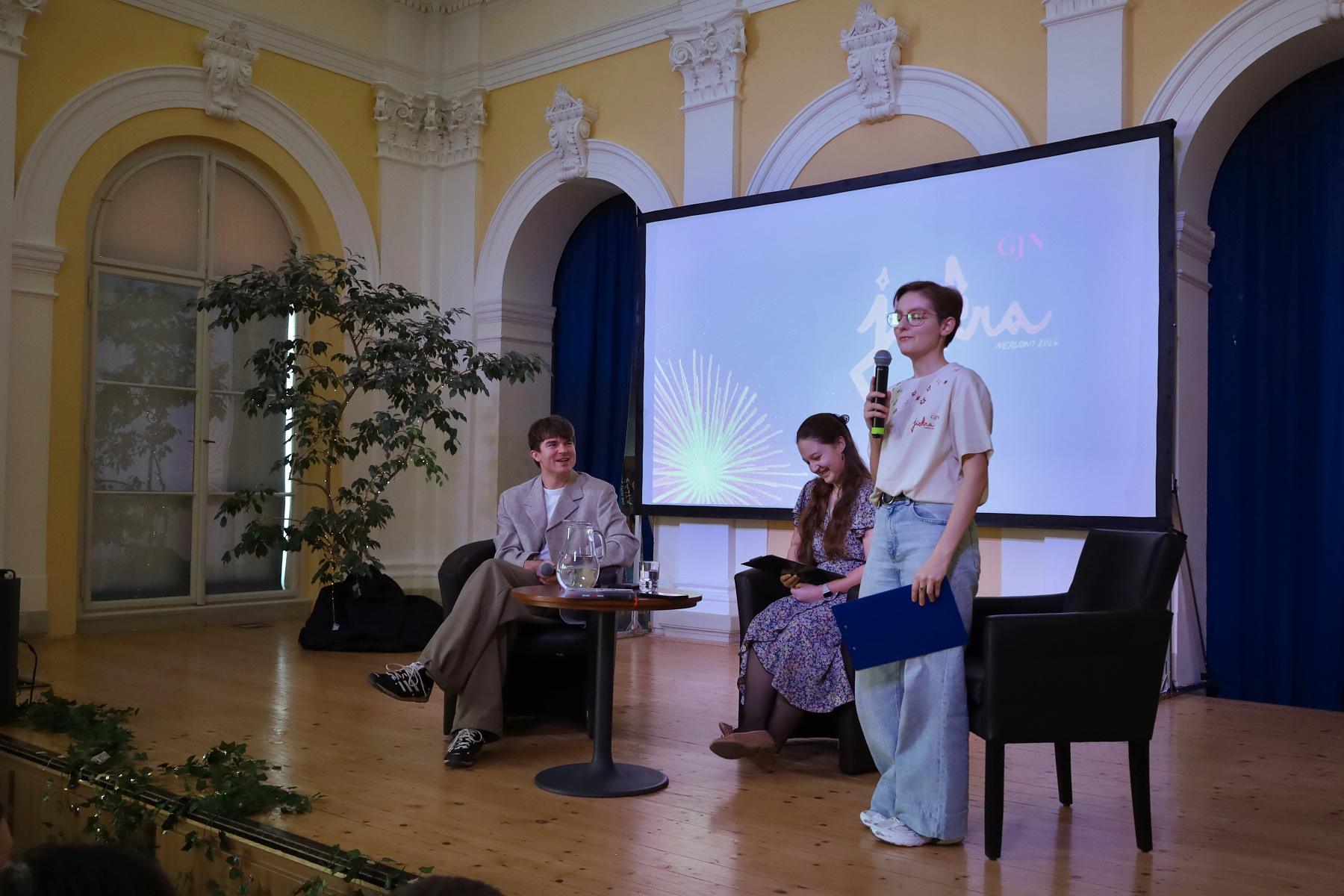 Děkujeme našim vzácným hostům za návštěvu. O zdar NeruDnů se zasloužily desítky studentek a studentů. Za všechny jmenovitě poděkujme aspoň dvěma hlavním organizátorkám, Naty Faryadové a Verče Hubáčkové z 6.C. Skvělá práce, díky mockrát!