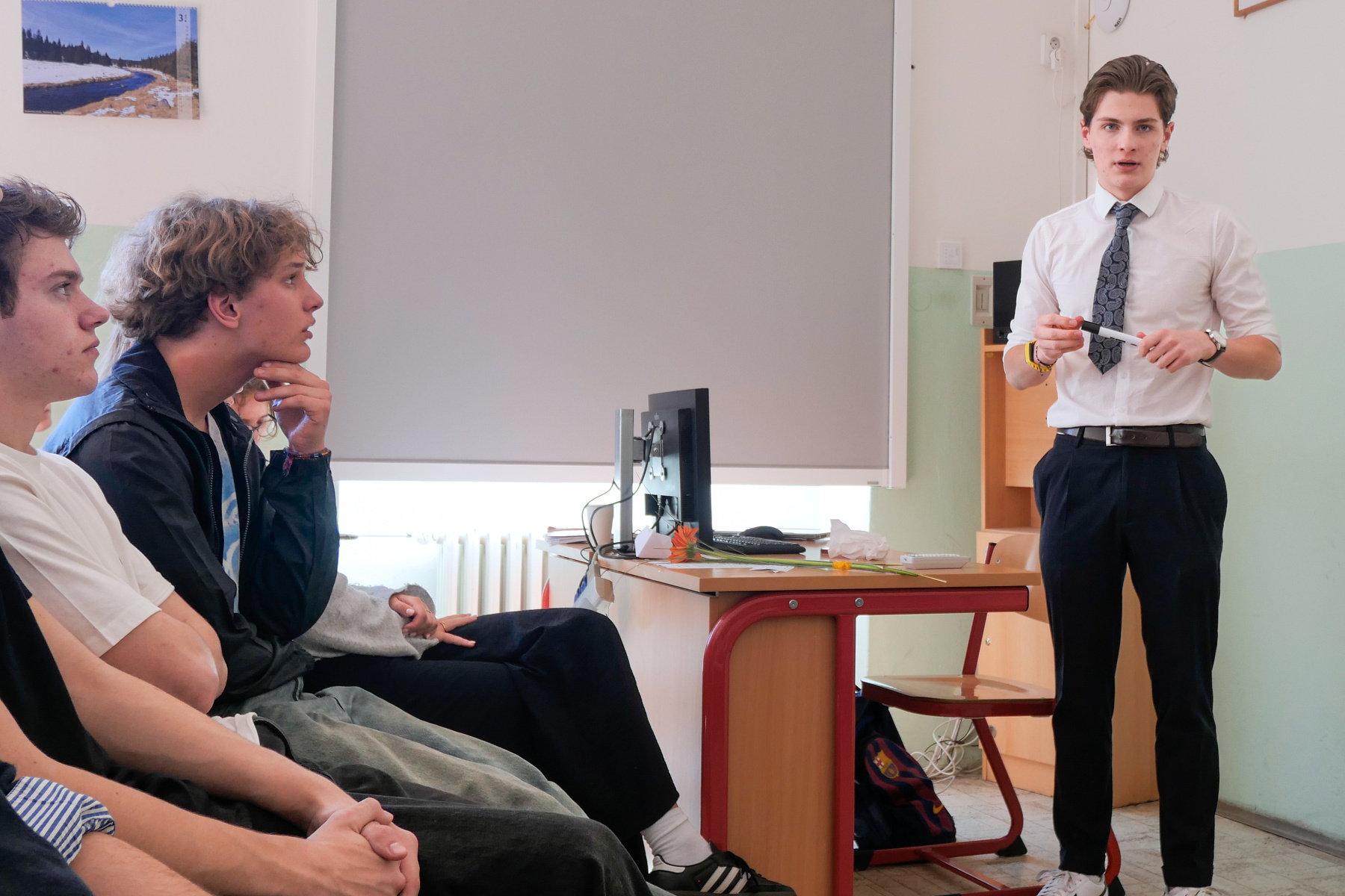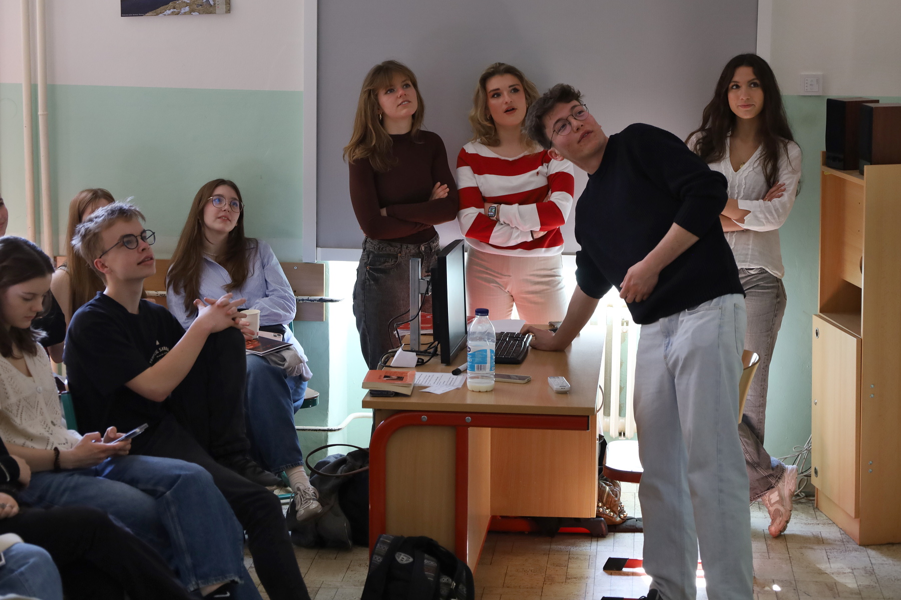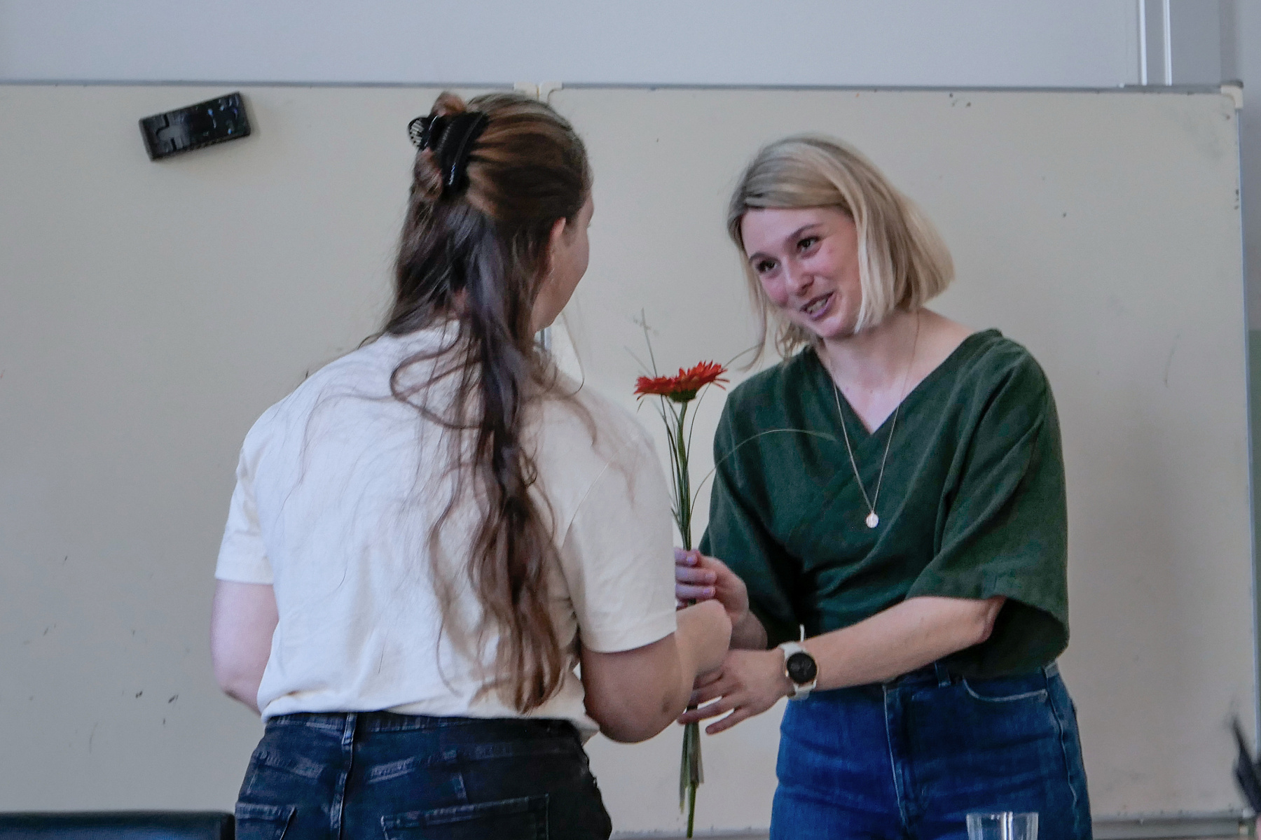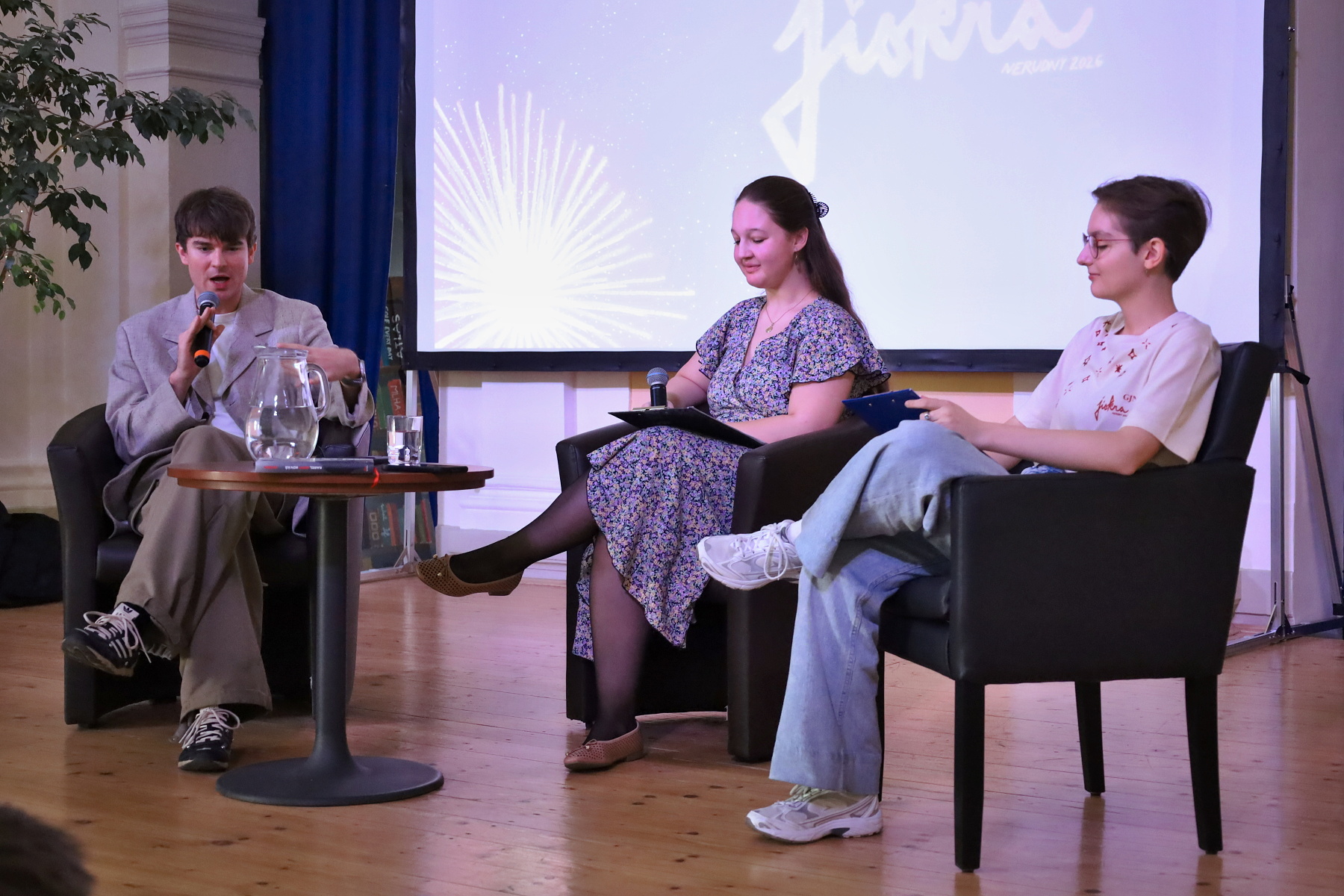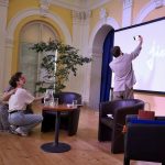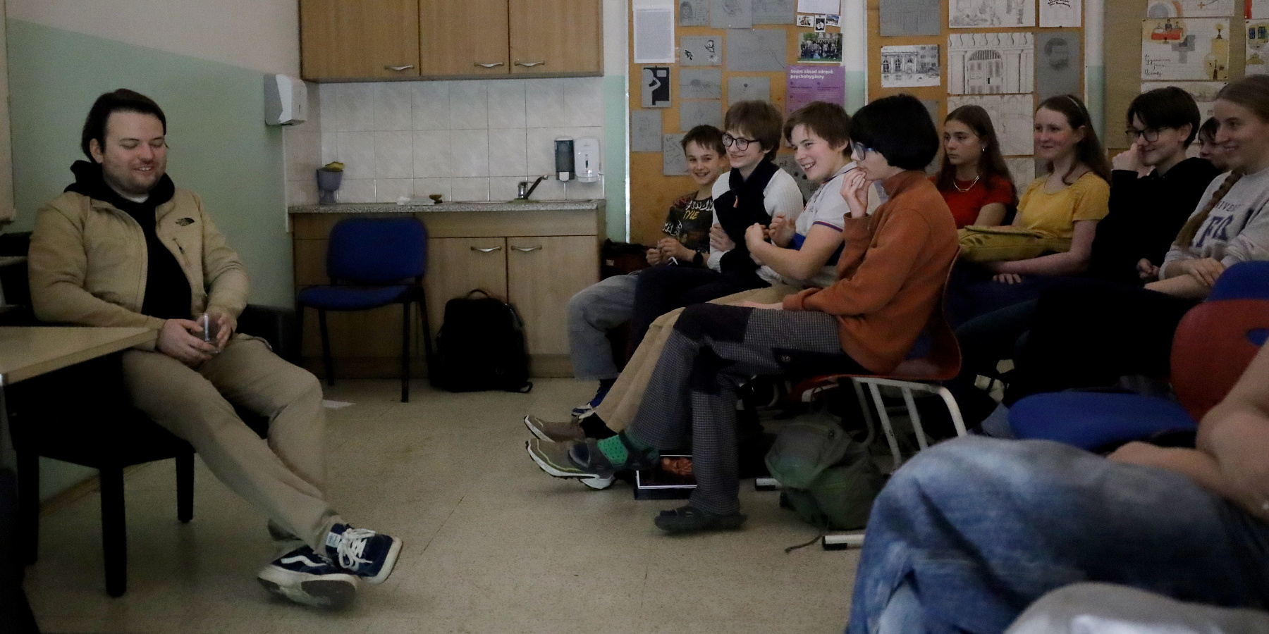 Děkujeme našim vzácným hostům za návštěvu. O zdar NeruDnů se zasloužily desítky studentek a studentů. Za všechny jmenovitě poděkujme aspoň dvěma hlavním organizátorkám, Naty Faryadové a Verče Hubáčkové z 6.C. Skvělá práce, díky mockrát!