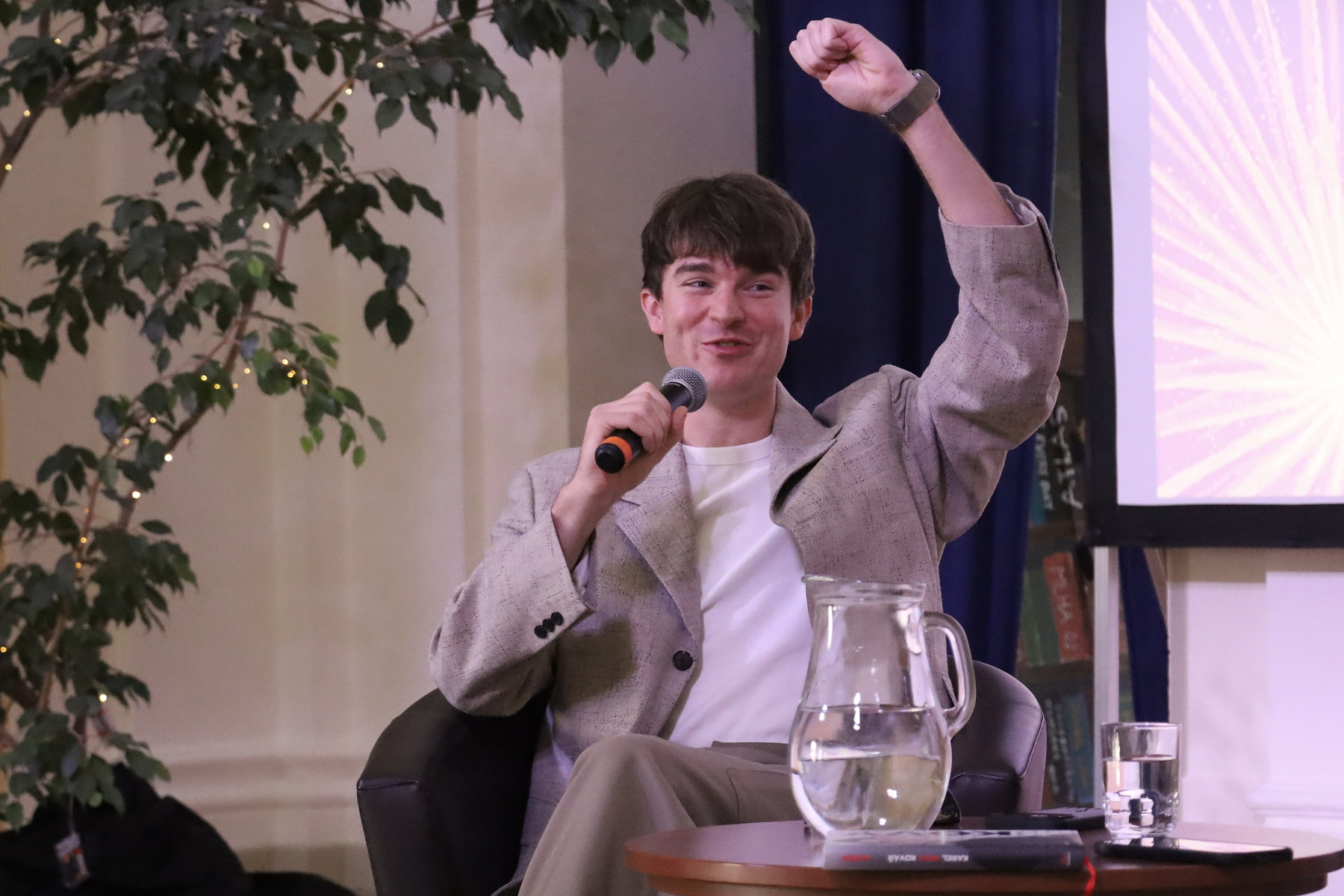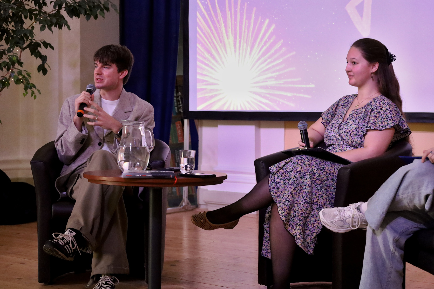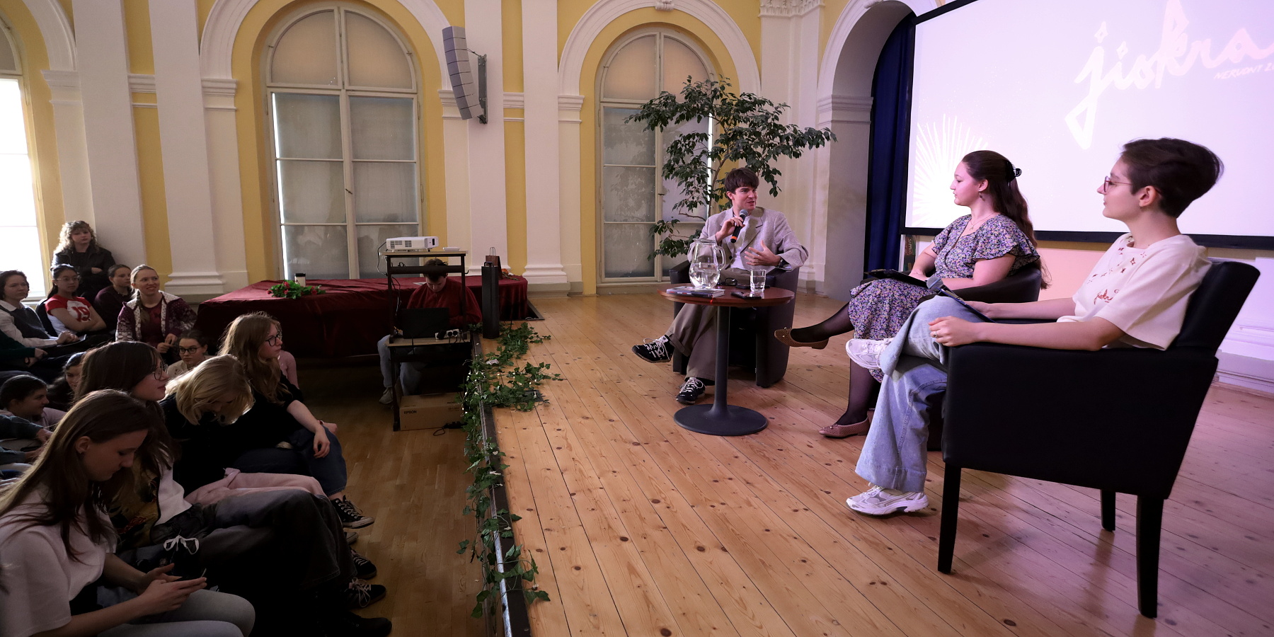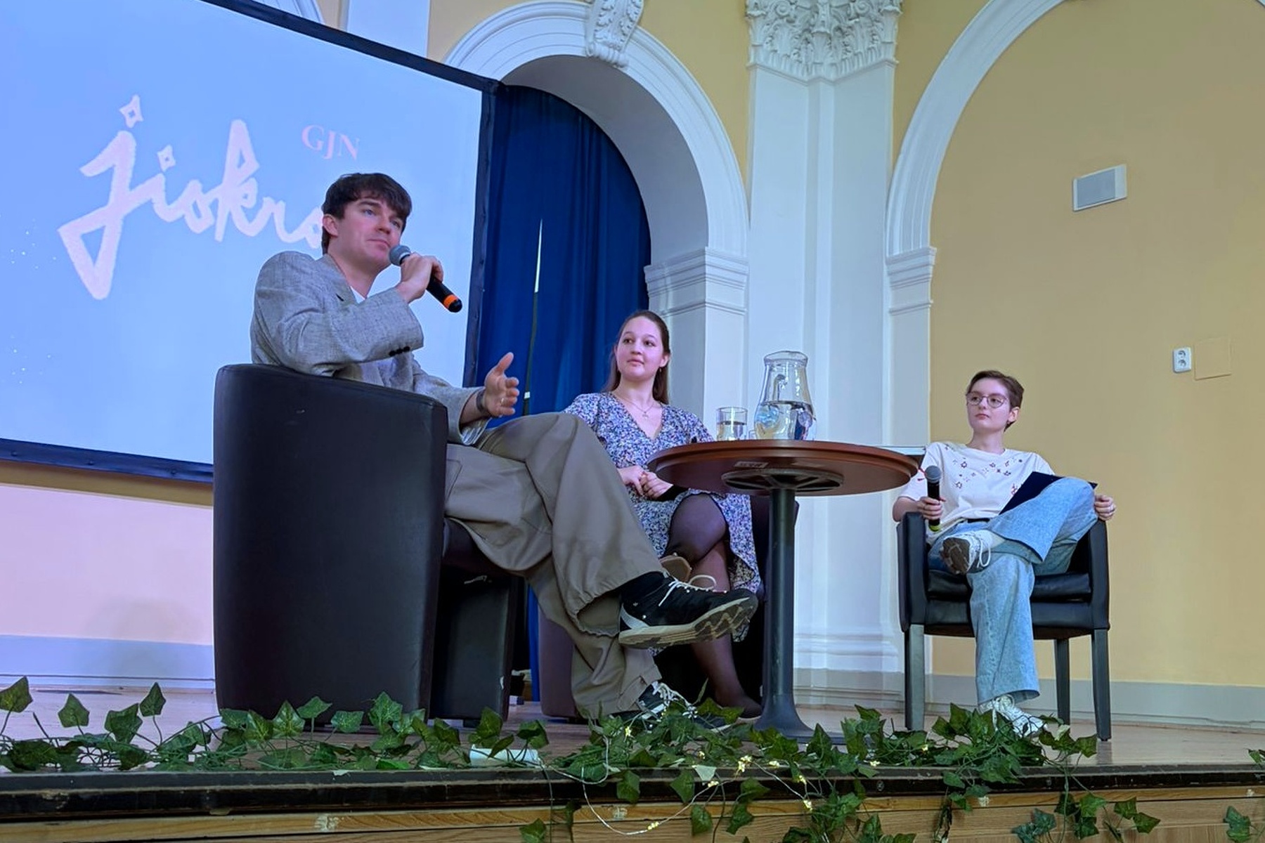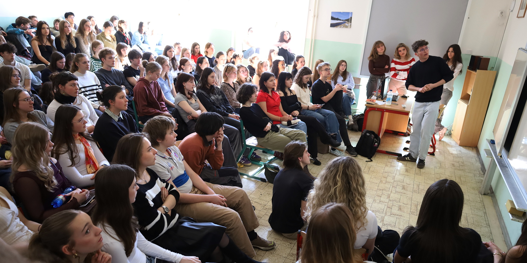 Děkujeme našim vzácným hostům za návštěvu. O zdar NeruDnů se zasloužily desítky studentek a studentů. Za všechny jmenovitě poděkujme aspoň dvěma hlavním organizátorkám, Naty Faryadové a Verče Hubáčkové z 6.C. Skvělá práce, díky mockrát!