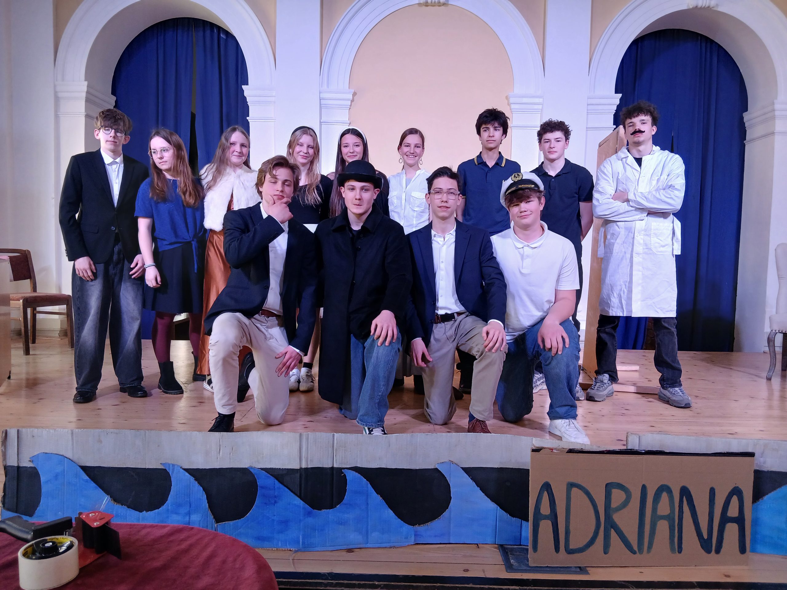 Naši studenti opět prokázali, že se fantazii meze nekladou a že si umí poradit i s výše uvedeným zadáním. Proto mohli diváci v aule užasle sledovat tančící kyselé okurky nebo královskou bitvu. Poté se publikum ocitlo na rozbouřených vodách lodi Adriana, kde se zrovna vyšetřoval zločin, načež se mohlo uklidnit na skupinové terapii, jež ovládla kašubština. K muzikálovému zážitku také přispěl výlet do pralesa, kde účinkující našli poklad, což však byla metafora pro lásku doprovázenou tklivými tóny saxofonu. Vše pak završila ztracená náušnice, jejíž příběh podaný kompozičně zajímavými dvěma pohledy mohli diváci rozluštit sami.