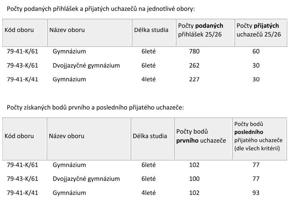 Informace z předchozího přijímacího řízení na GJN :